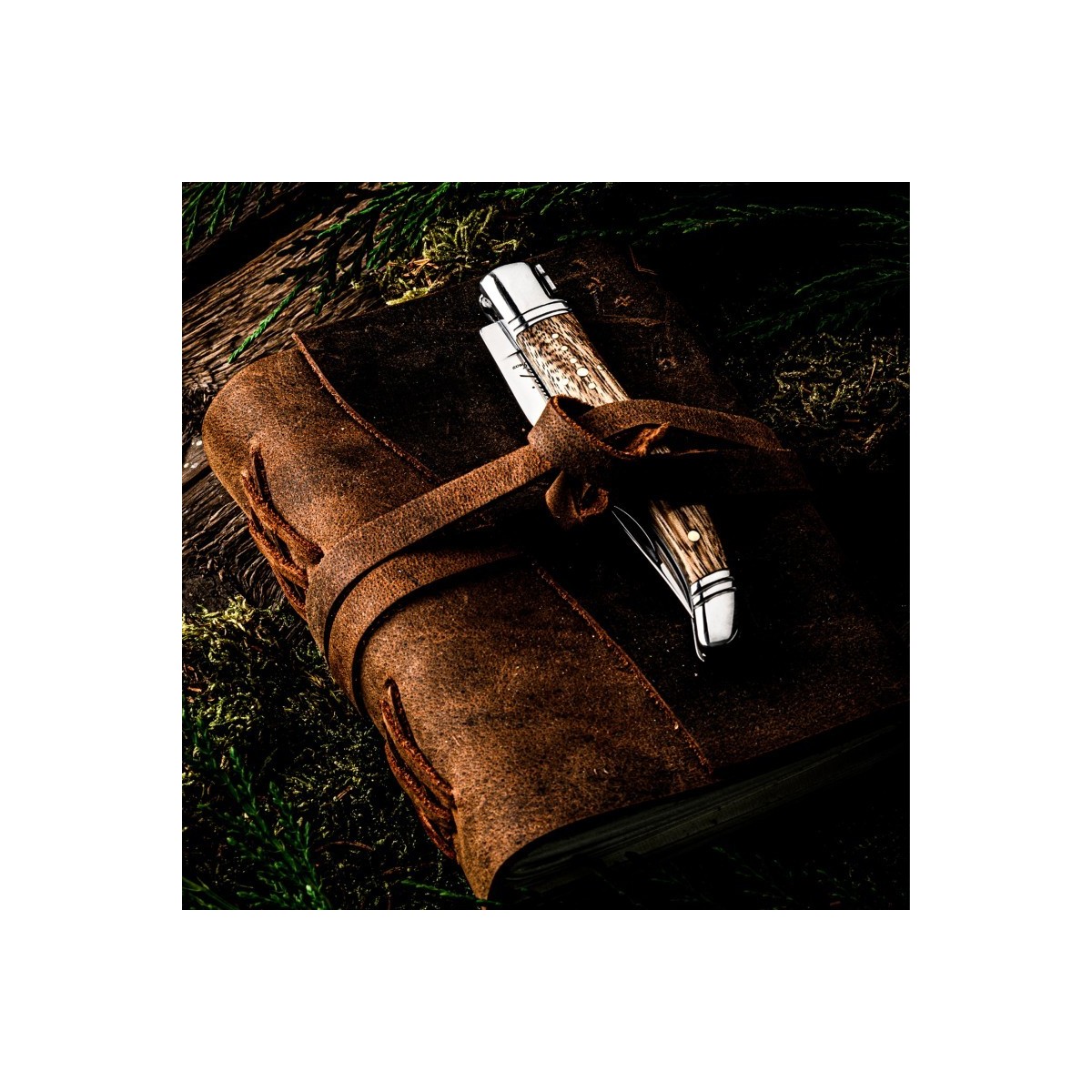 Set cutit de buzunar cu ascutitoare si husa de piele Laguiole Style de Vie Luxury Line ZAKMLEERZEBRANO