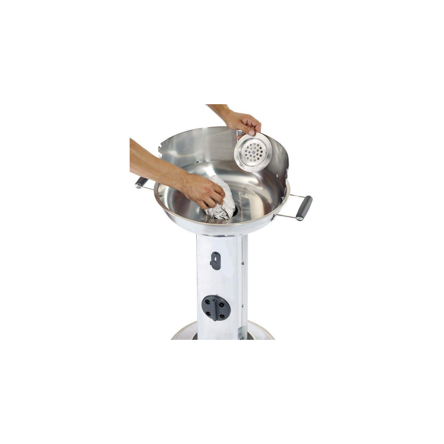 In partea inferioara a gratarului se afla o tava detasabila de colectat cenusa si o clapeta de ventilatie. Carcasa solida si stabila din otel inoxidabil garanteaza calitatea materialelor, durabilitatea si functionalitatea, dar ii si confera grillului un aspect estetic placut.