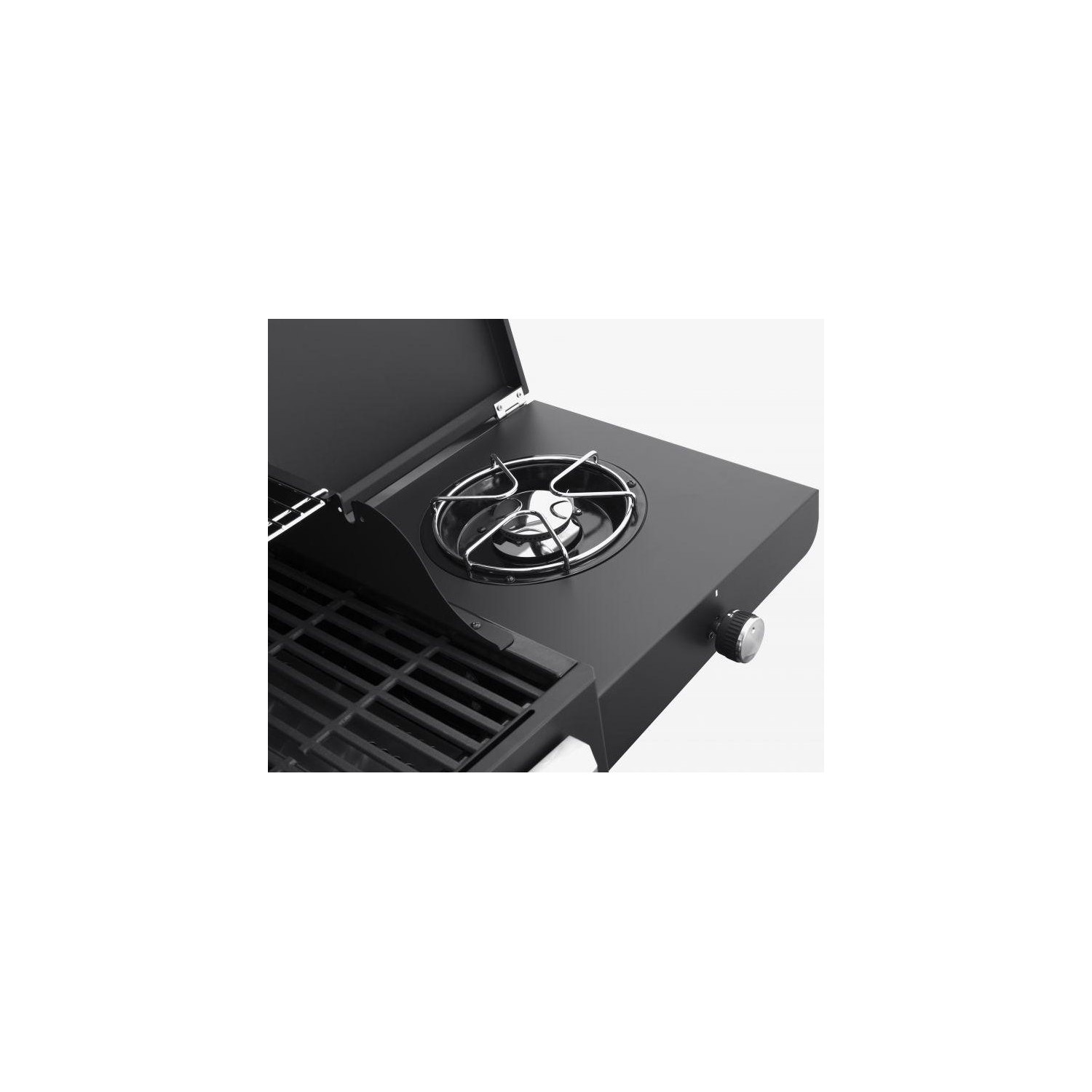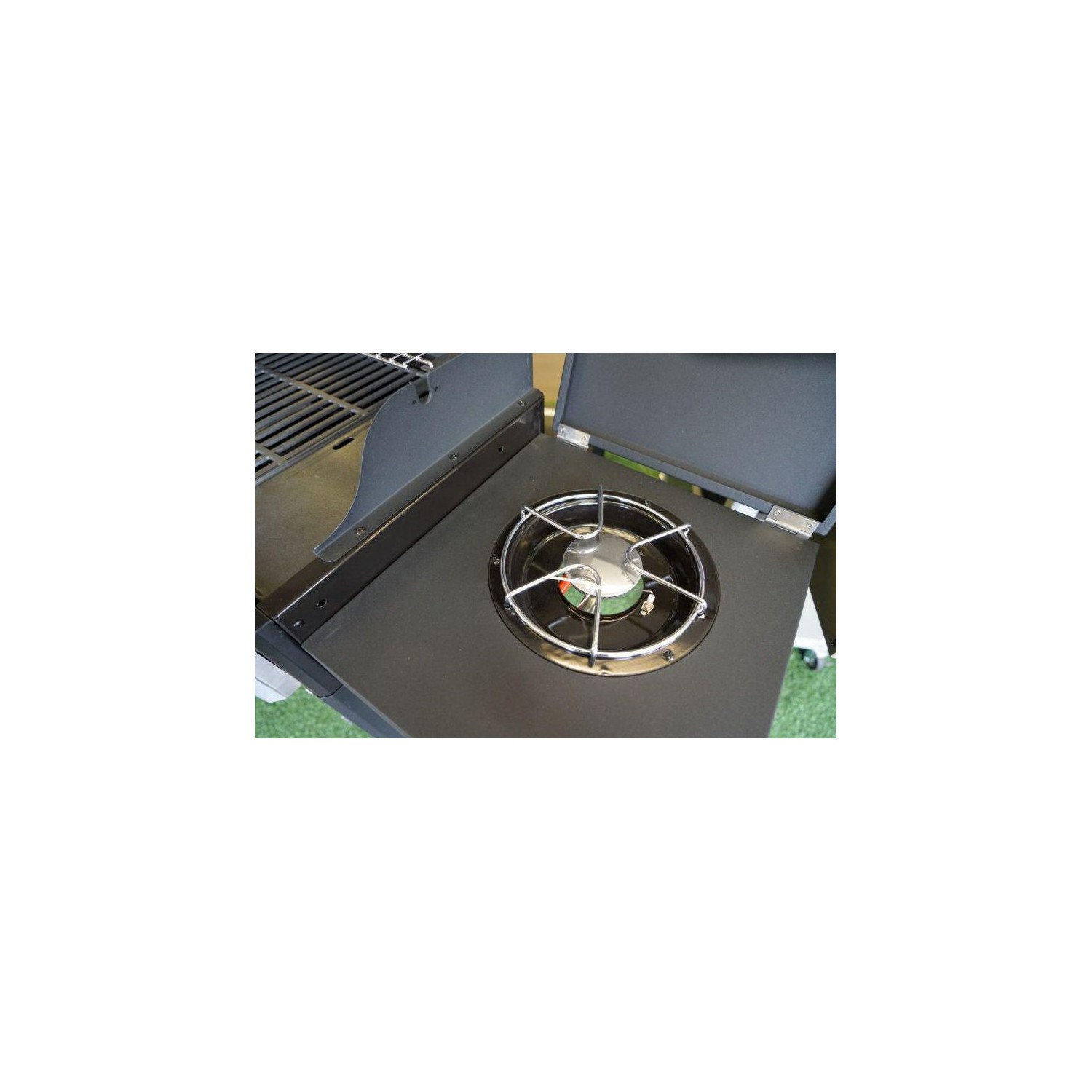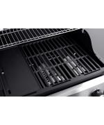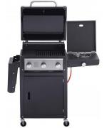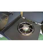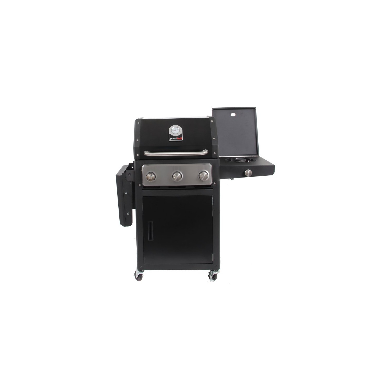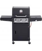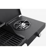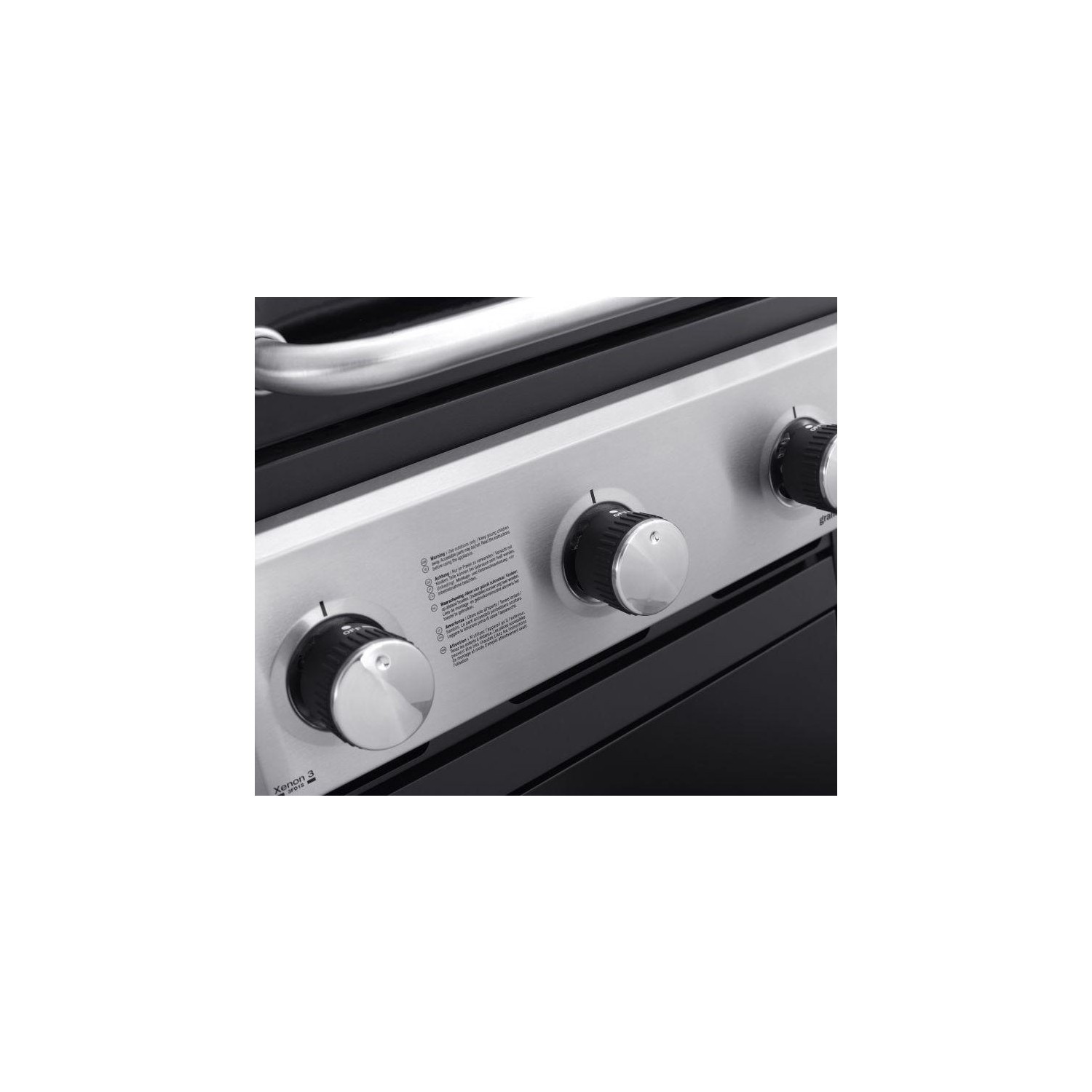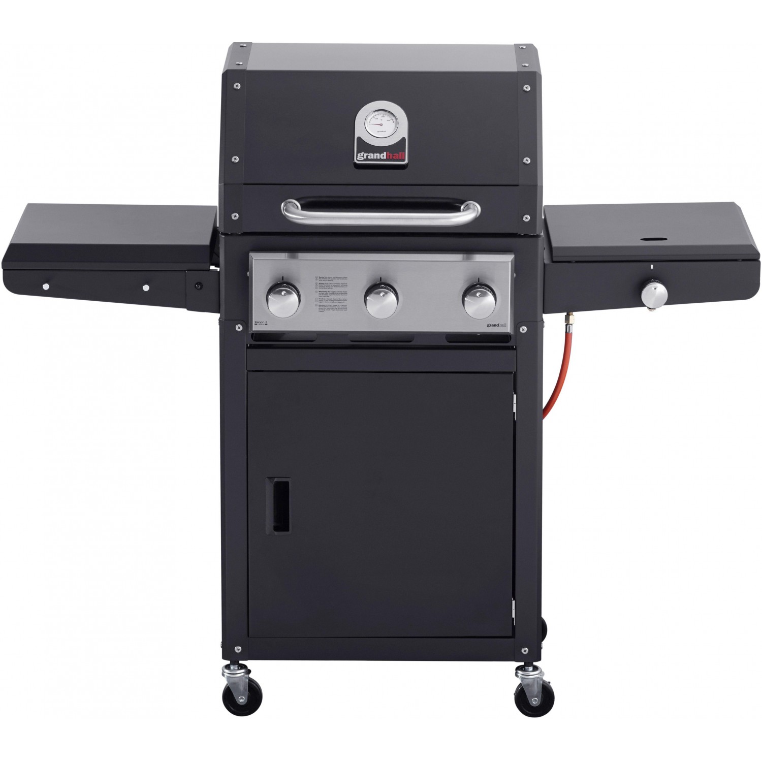 Gratarul pe gaz Grand Hall Xenon 3 este prevazut cu usa din otel inoxidabil si cu un capac de dimensiuni mari, care pastreaza caldura in interior, avand un cadru negru. Xenon 3 are un sistem standard de arzatoare si este echipat cu doua griluri de gatit din fonta si cu o plita din fonta. Arzatorul lateral poate fi utilizat, de exemplu, pentru a gati paste sau pentru a praji creveti. Rotile rezistente ale acestui model ajuta la deplasarea lui cu usurinta.
