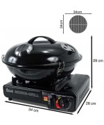 Alte doua caracteristici ale acestui grill sunt puterea de ardere si siguranta: arzatorul de 2,2 kW functioneaza cu un cartus de gaz (nu este inclus), cu un timp de ardere de pana la 2 ore si poate fi actionat in conditii de siguranta datorita aprinderii de tip piezo.