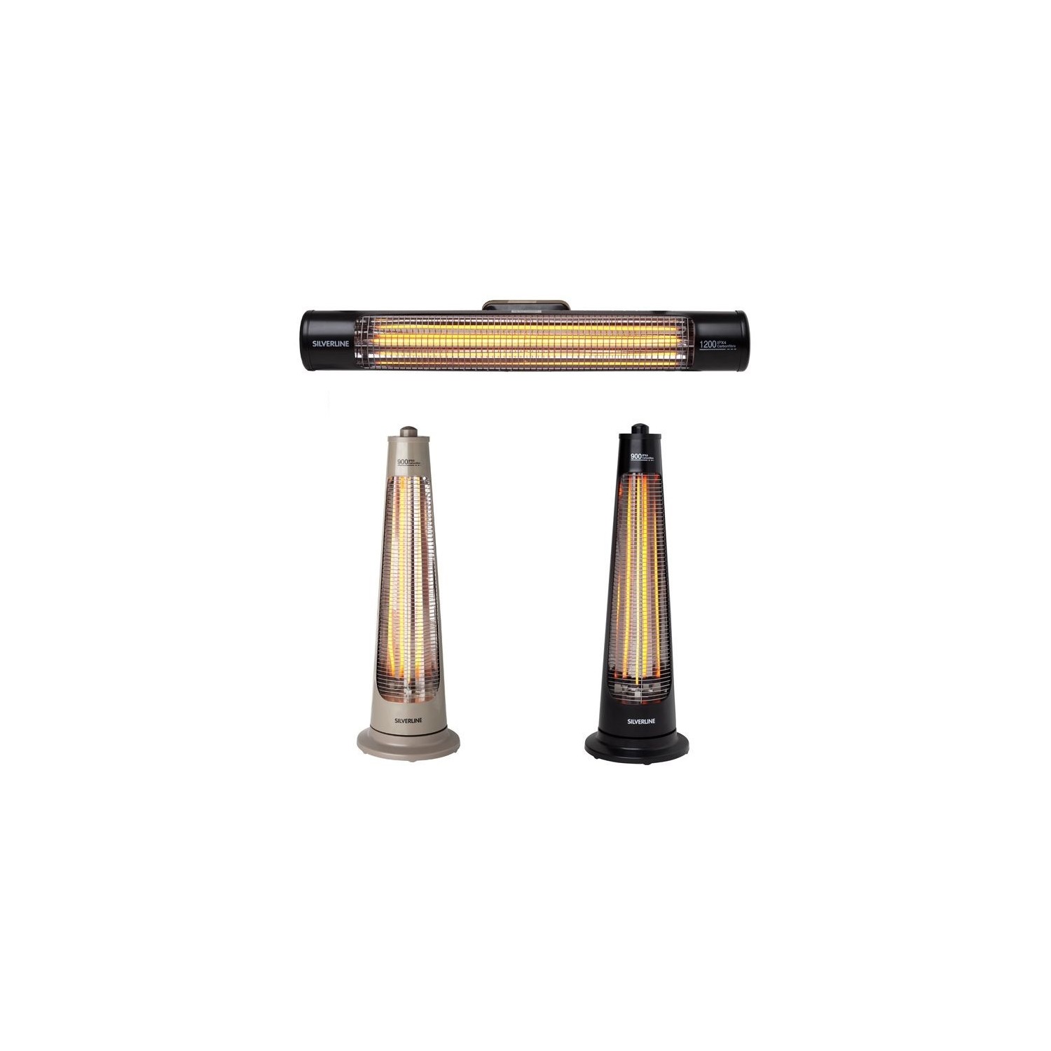 Tehnologia C-Wave din spatele aparatelor Silverline asigura o incalzire eficienta si confortabila, fara sa usuce sau sa dea senzatii de arsura. Asigura o caldura directa si eficienta, cu doar jumatate de consum, comparativ cu alte tipuri de incalzitoare. Aparatul are doua setari de functionare, miscarea oscilanta si o functie de temporizare care poate sa fie ajustata din panoul digital sau folosind telecomanda inclusa. Incalzitorul se conecteaza direct la o priza. Aparatul este conceput sa reziste la ploaie si umezeala.