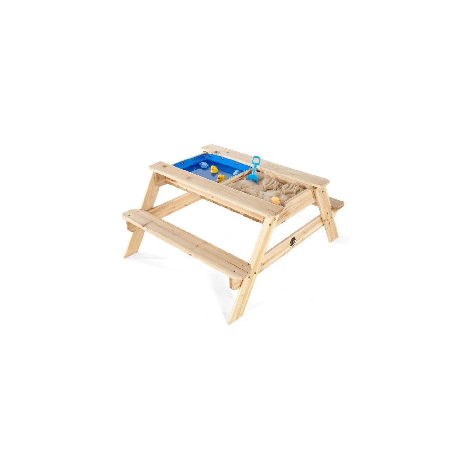Masa de joaca cu activitati Surfside Sand & Water Plum, din lemn de calitate superioara, cu doua compartimente de joaca:tavi din plastic colorate care pot fi umplute cu nisip si apa pentru joc creativ.