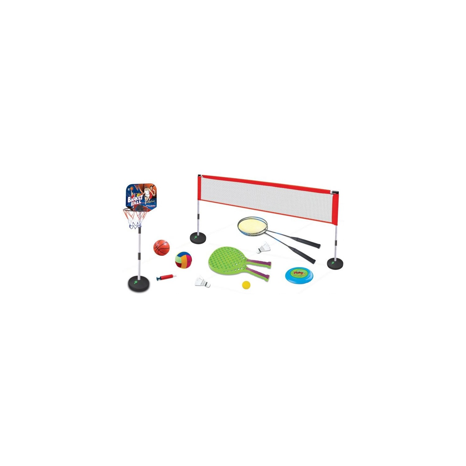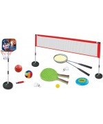 Set sport multifunctional 5 in 1 Alibibi ce contine cos minge baschet, rachete badminton, fileu