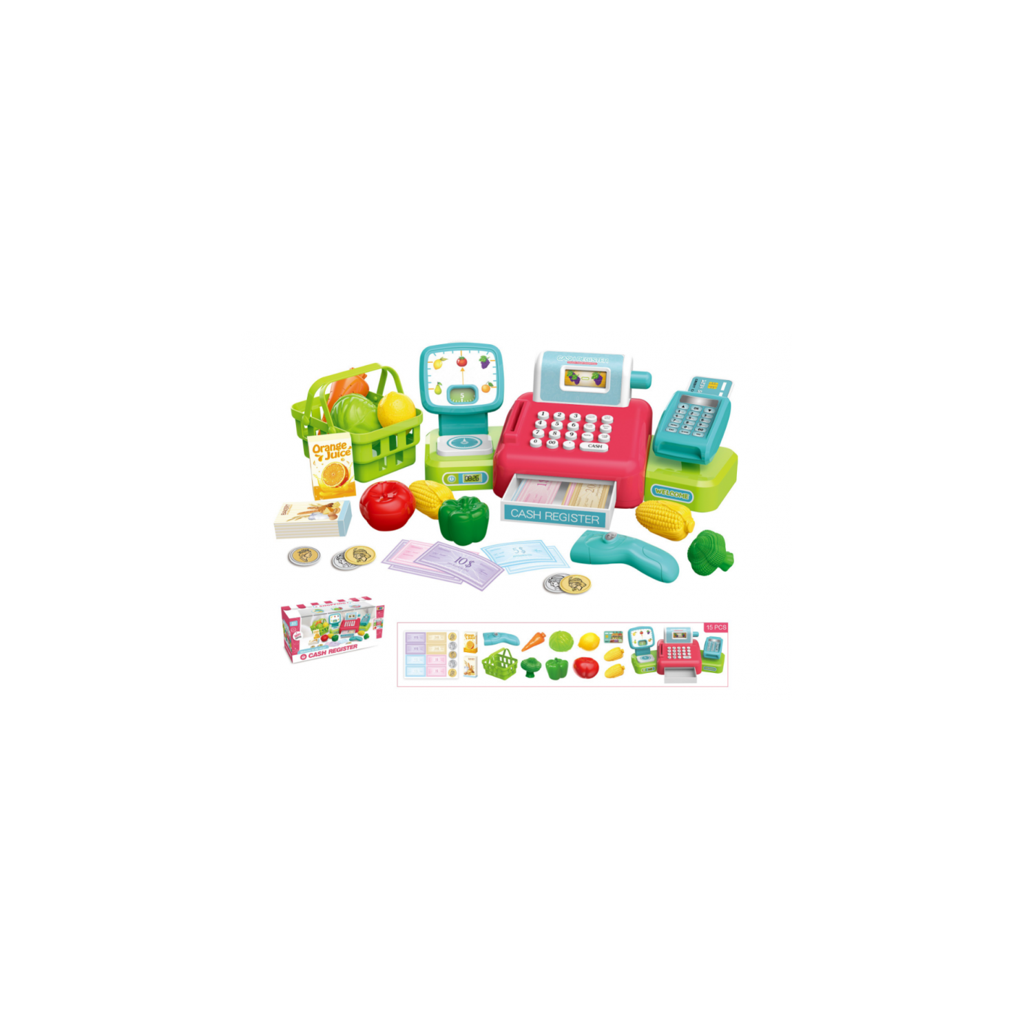 Casa de marcat AliBibi, accesorii si cos de cumparaturi, scanner, pos si cantar