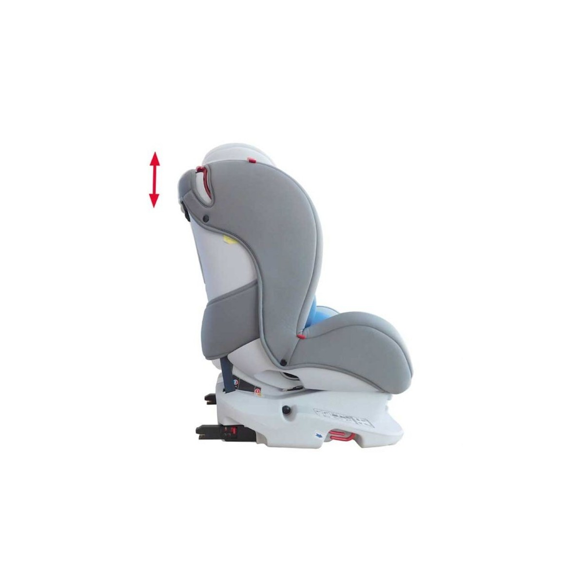 Spatarul poate fi reglat in 5 pozitii, este dotat cu protectie cervicala si portectie impotriva impactelor laterale. Tetiera este regalbila pe inaltime.