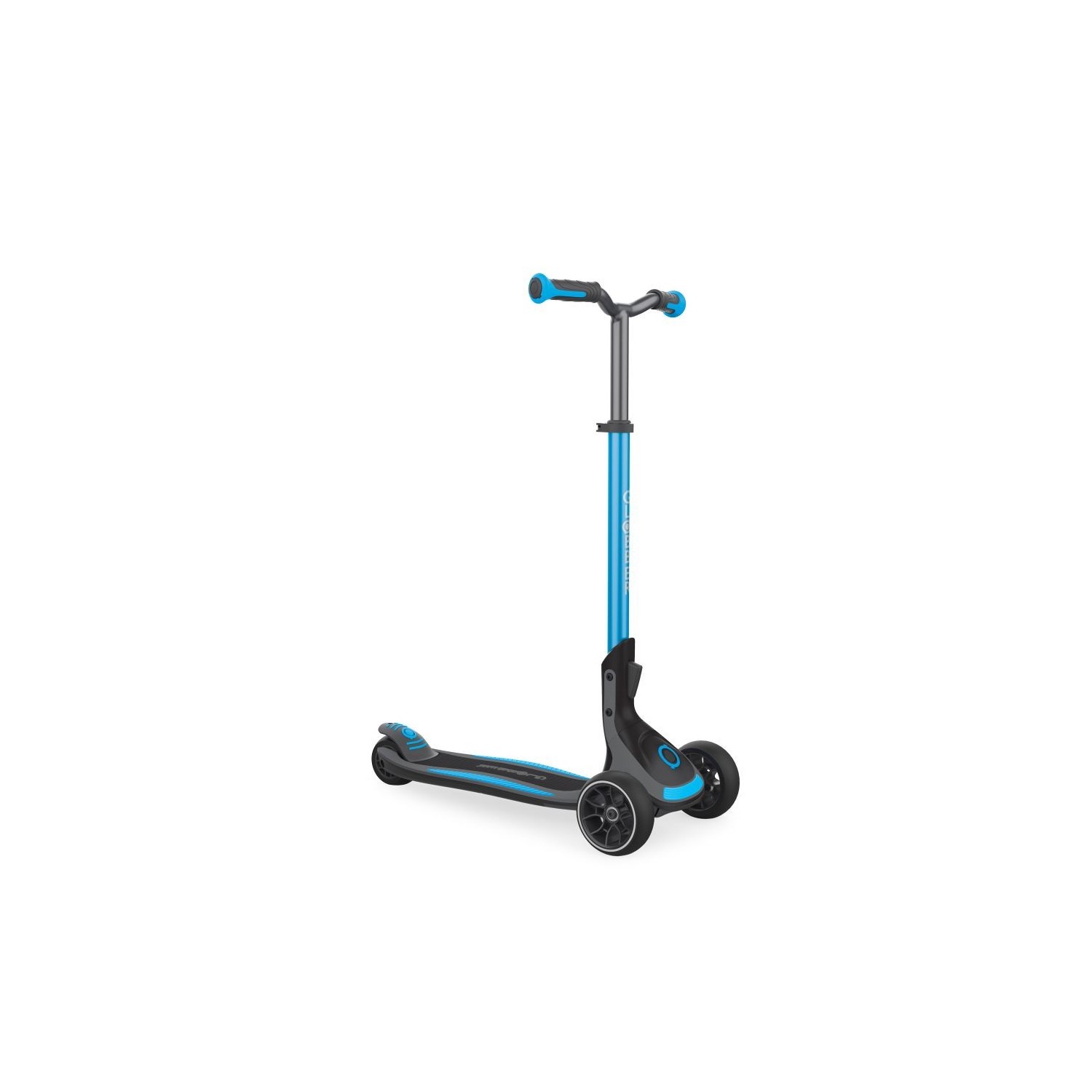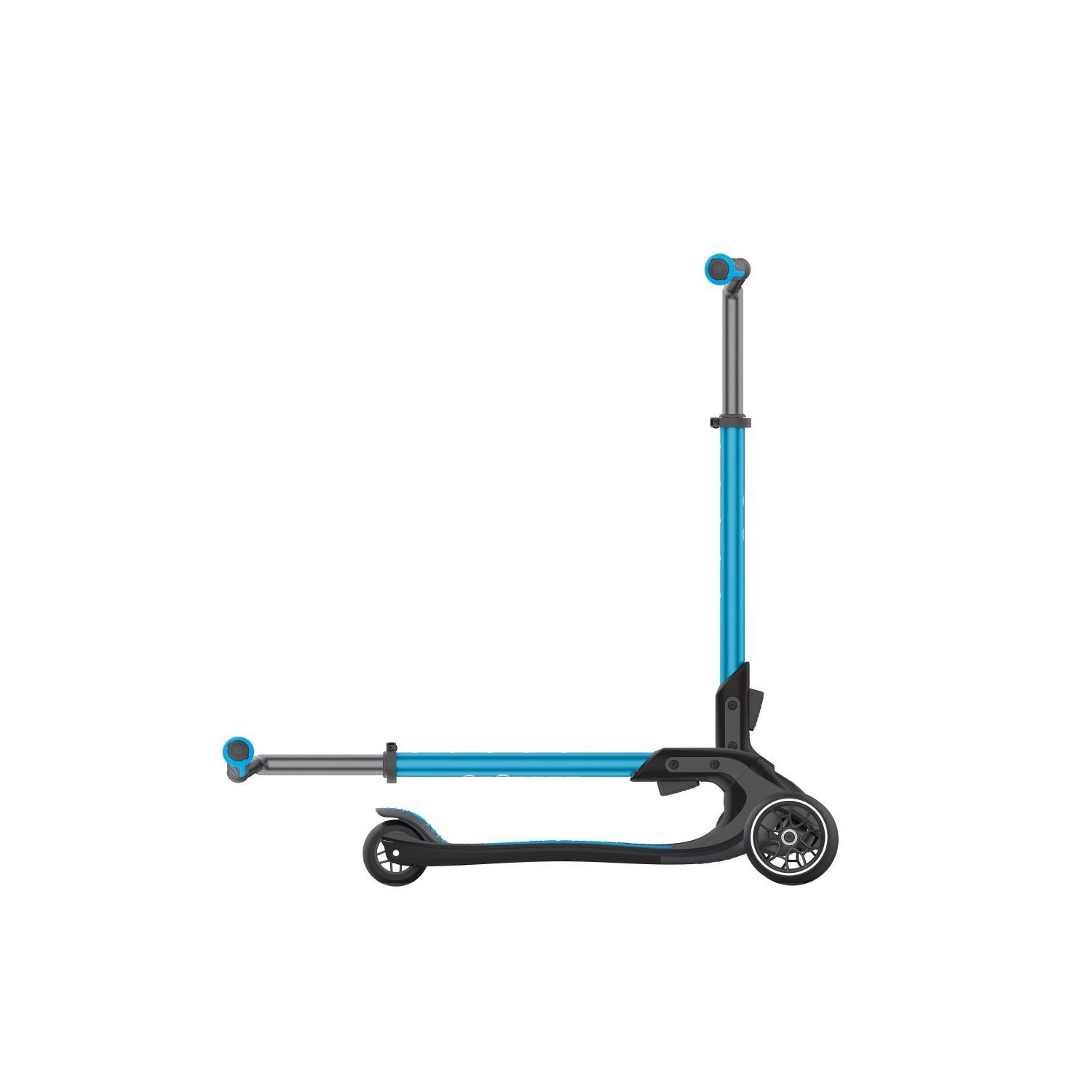 SIGUR SI DURABIL PLIABILA: Sistem de pliere eliptic exclusiv patentat de GLOBBER - o simpla apasare de buton este suficienta pentru plierea ghidonului - ; Usor de transportat, sistem troller pe roata din spate.