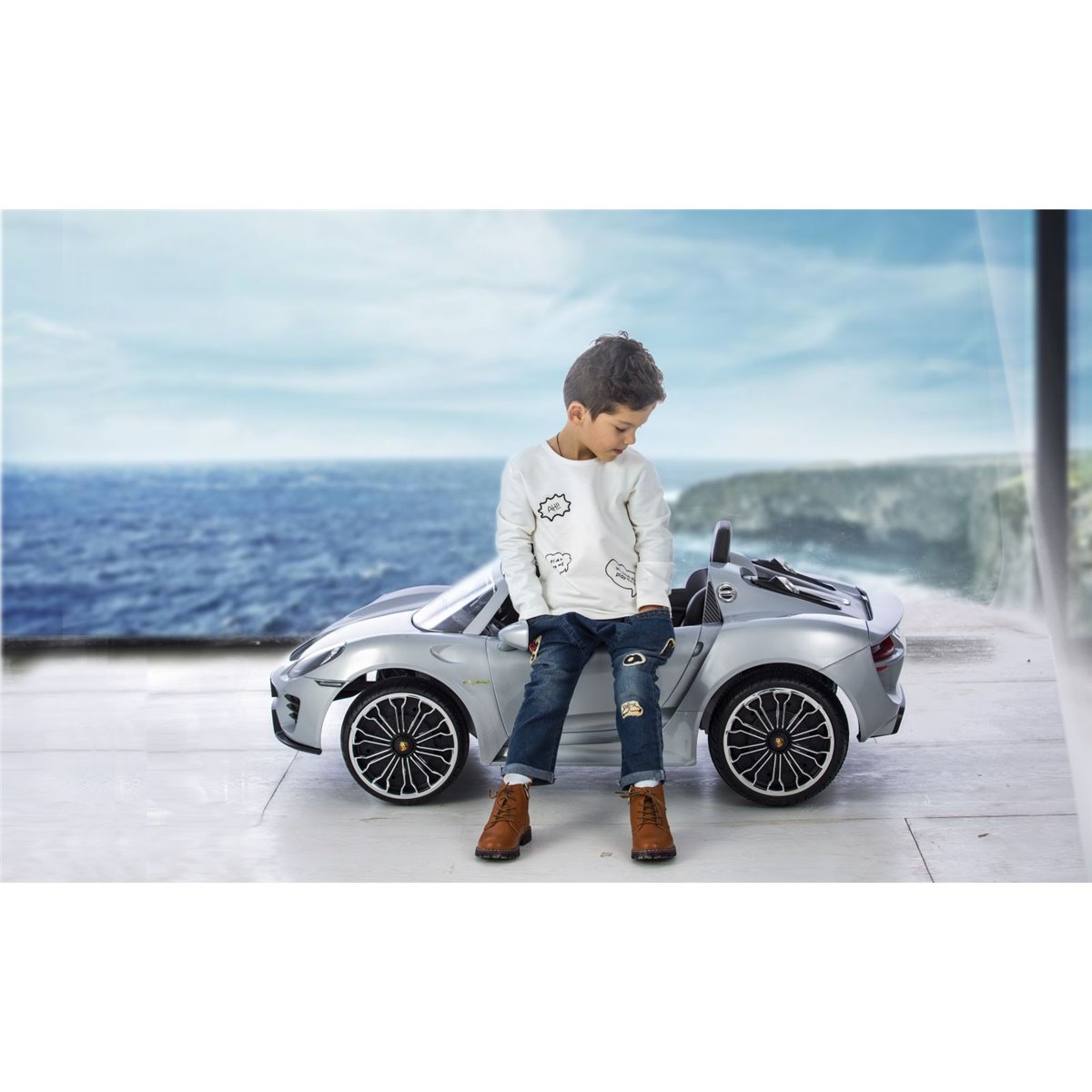 Cu designul său realist Porsche, este alegerea perfectă pentru tinerii fani ai mașinilor. În Porsche 918 puteți conduce înainte și înapoi cu viteze de până la 5 km/h.