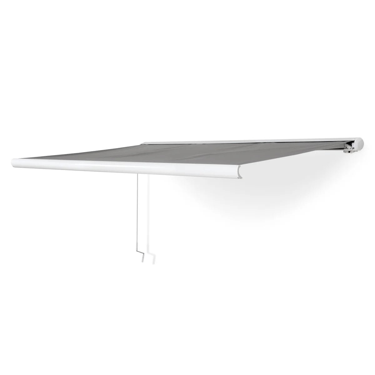 Realizata integral din aluminiu vopsit in camp electrostatic. Copertina este realizata din poliester 280g cu protectie impotriva umezelii si a protectiei UV . Caseta integral aluminiu cu dimensiunile 165*48.5mm/1587*125mm Bara frontala aluminiu cu dimensiunea 120x64mm Brate aluminiu cu dimensiunile 61*32mm/51.5*26.7mm Cu manivela Demontabila Poate fi actionata atat manual prin manivela cat si din telecomanda ce actioneaza motorul electric. Optional se poate achizitiona senzor vant/soare .