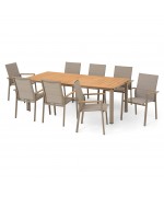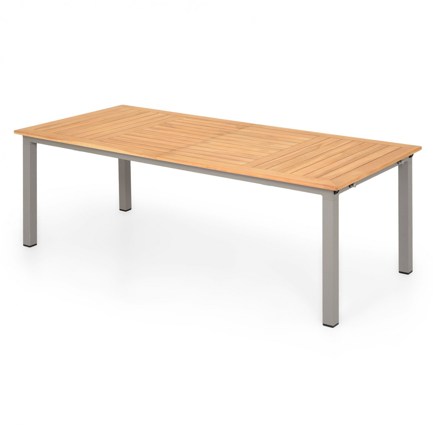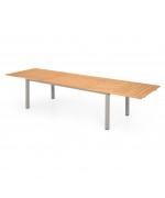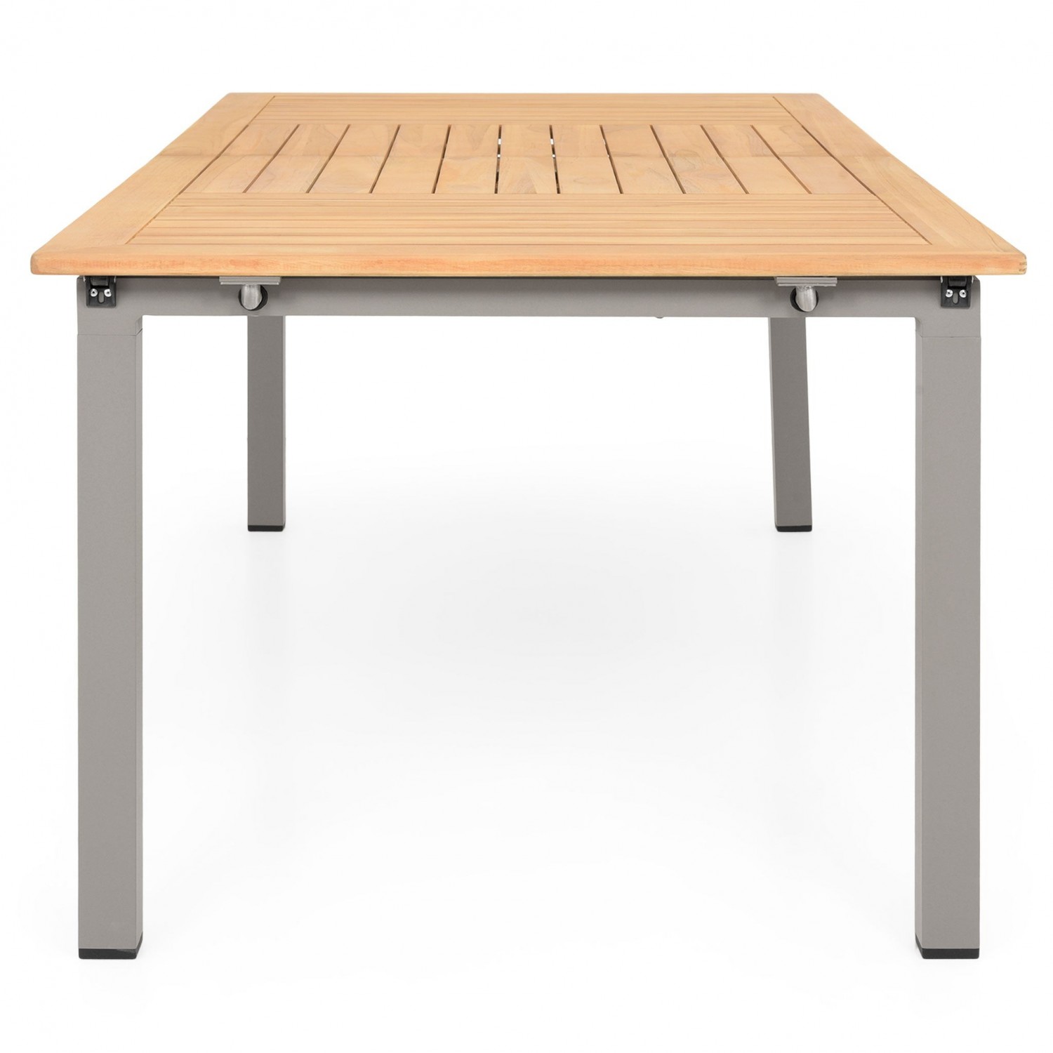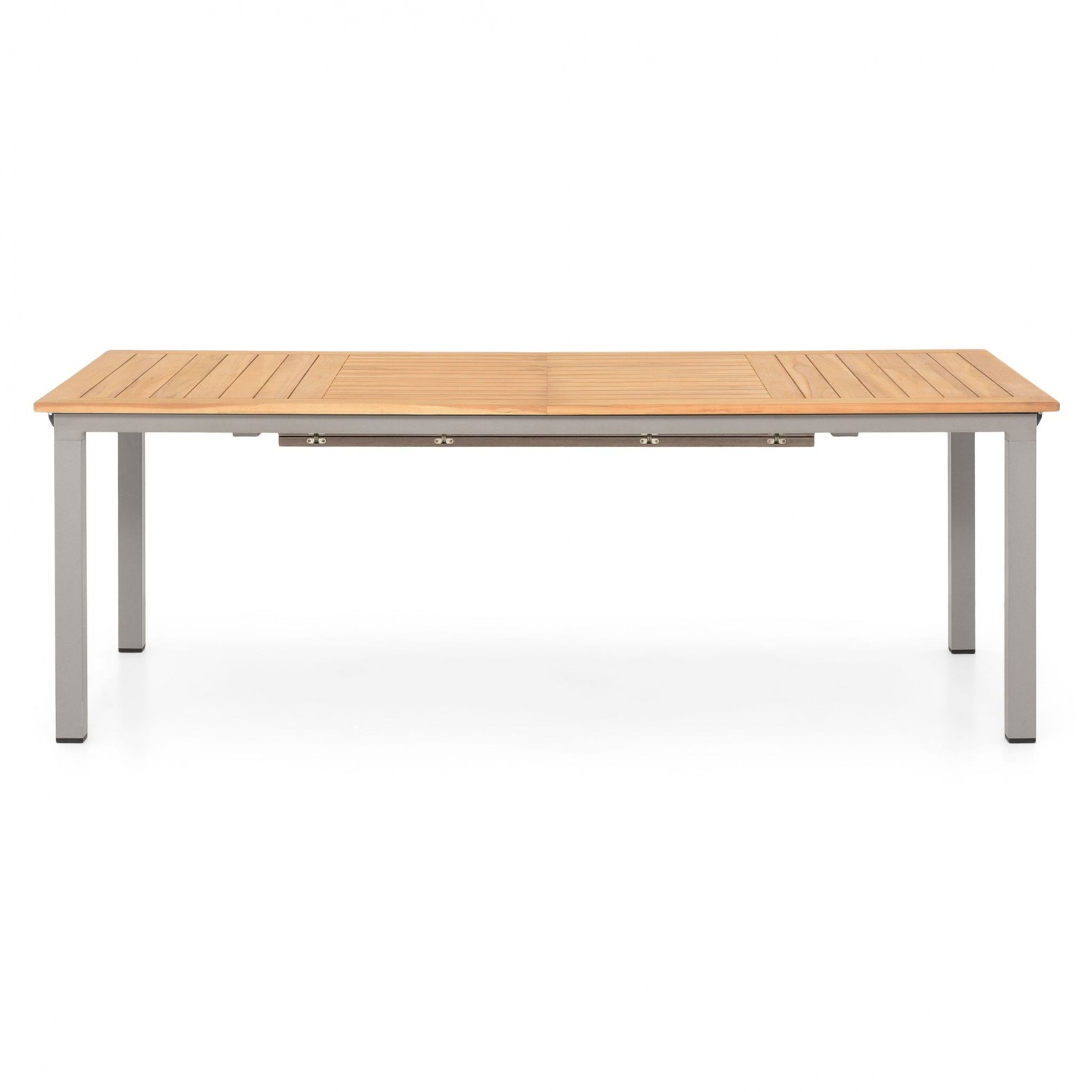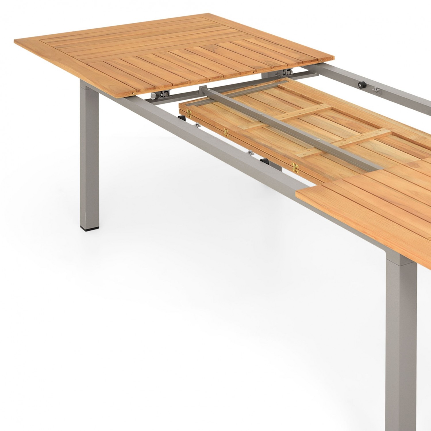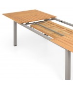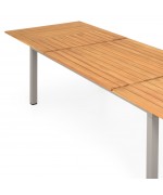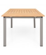 Masa are o structura din aluminiu, iar blatul mesei este realizat din lemn de teak.