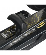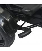 Rotile din PVC sunt antiderapante, iar masinuta este echipata cu frana de mana si schimbator de viteza.