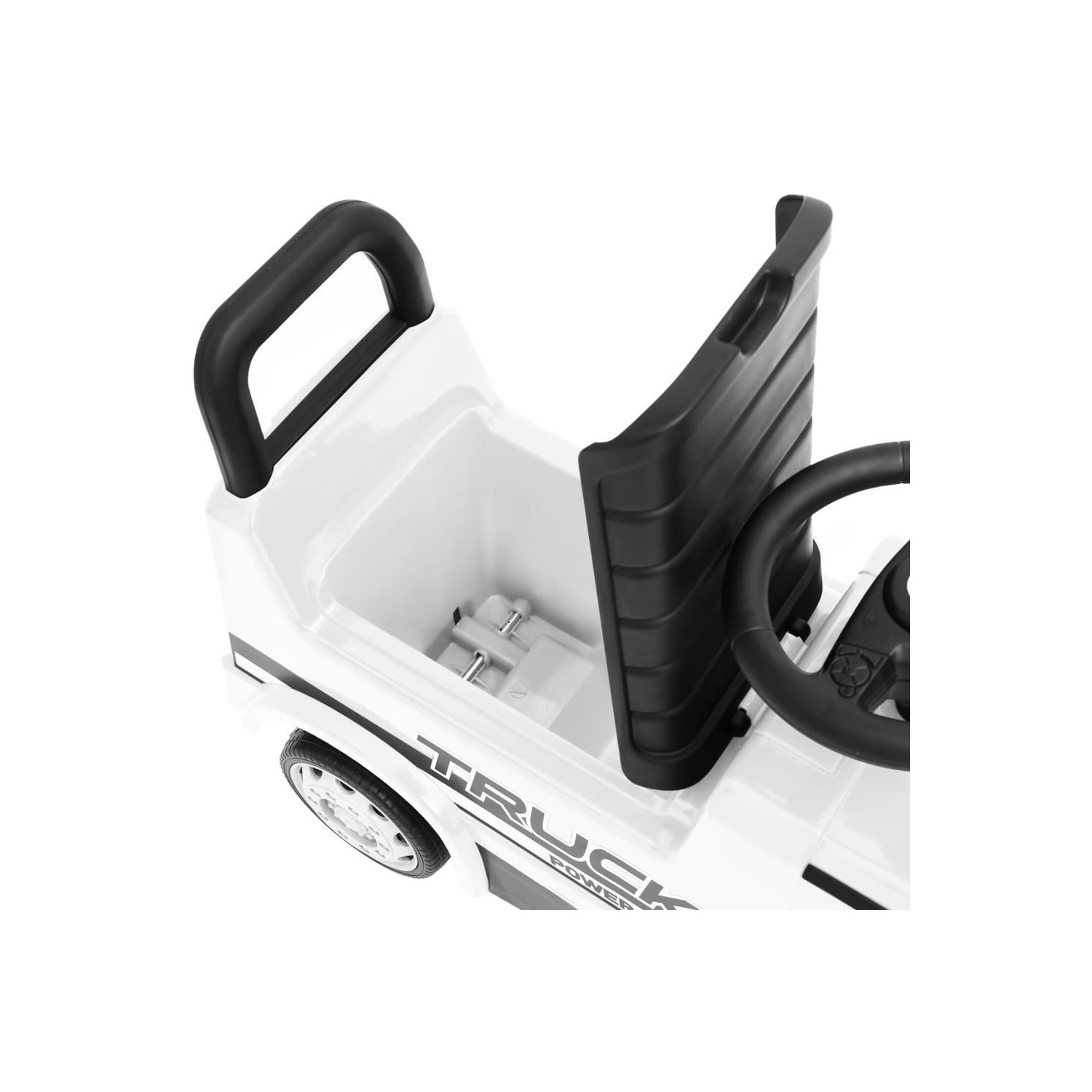 Masina pentru copii ride-on are un volan pentru directie, un scaun jos si un spatar conceput ergonomic, care faciliteaza urcarea si coborarea.