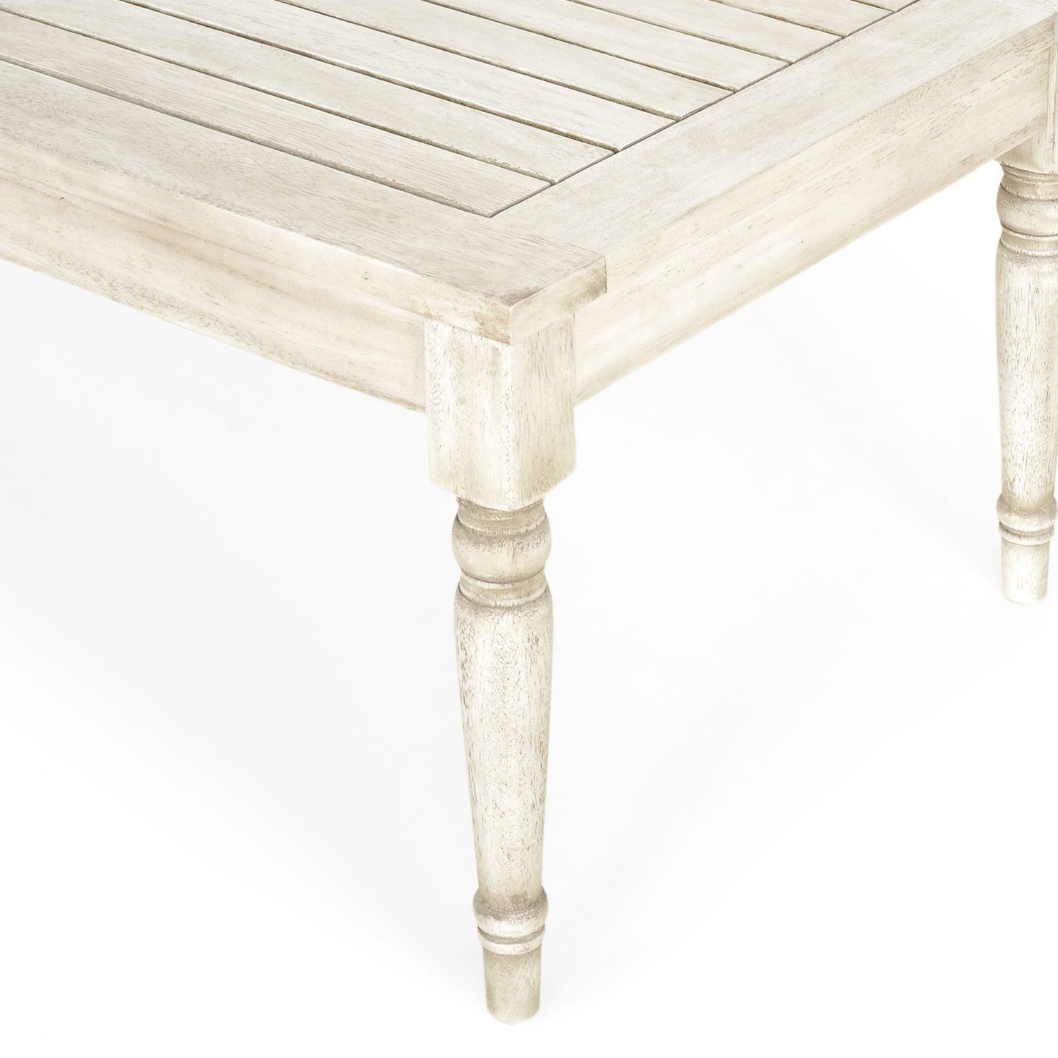 Cu un design deosebit, realizat din lemn de eucalipt vopsit în alb, masuta Marie va ofera un spatiu confortabil si placut pentru petrecerea timpului în aer liber.