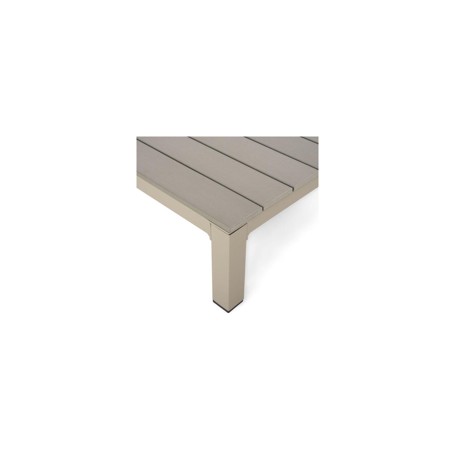 Mobilierul este de calitate înalta, fiind realizat din structura de aluminiu vopsita în camp electrostatic, iar topul este din imitatie lemn, pentru un plus de stil si rezistenta.