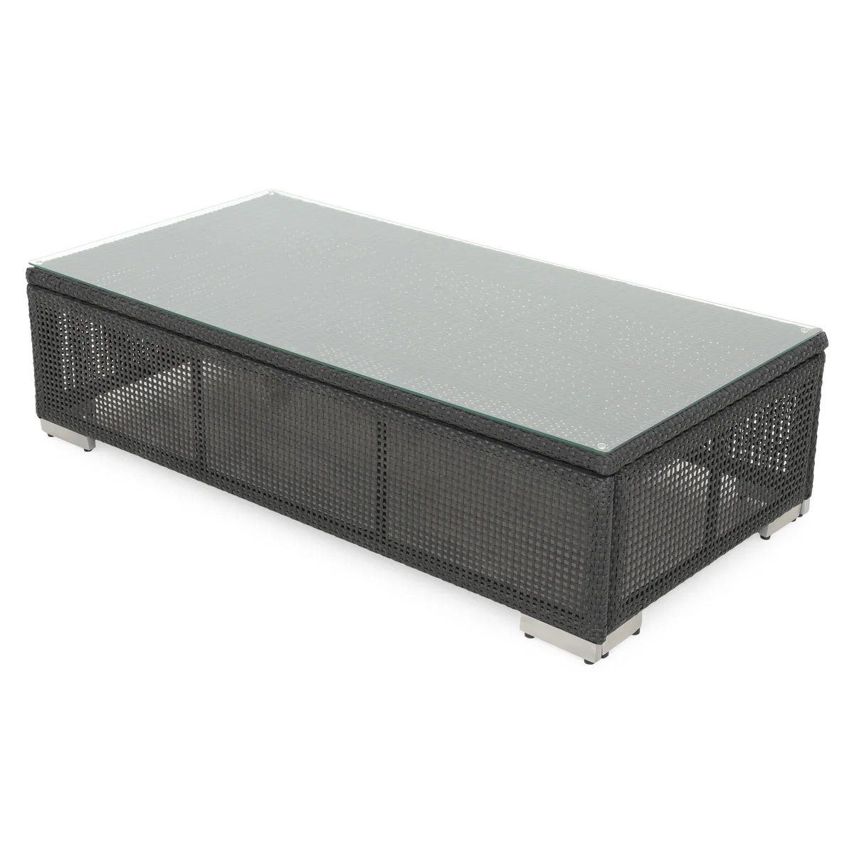 Realizat din structura solida de aluminiu vopsita in camp electrostatic si impletita cu fibre sintetice @Vyro cu protectie UV. Topul este realizat din sticla securizata .