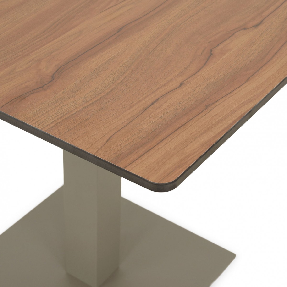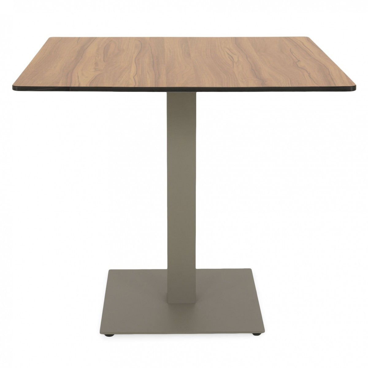 Structura este realizata din aluminiu si otel vopsite in camp electrostatic, asigurand stabilitate si rezistenta in timp. Blatul din HPL este conceput pentru utilizare outdoor, fiind rezistent la uzura, zgarieturi si conditii variate de mediu.
