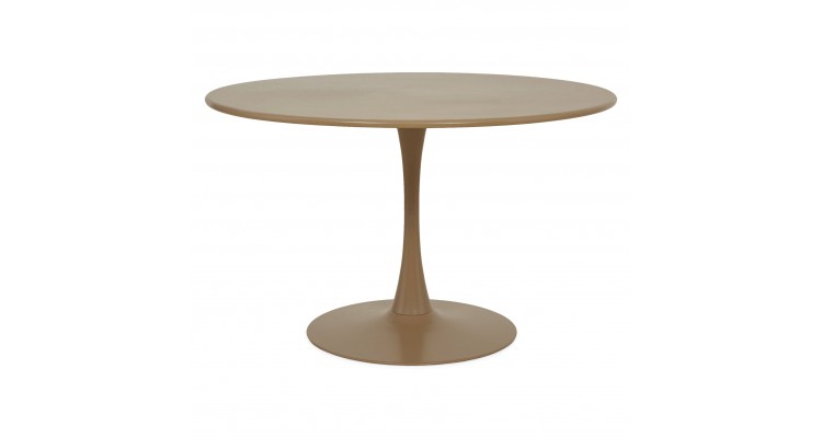 Forma rotunda contribuie la o interactiune mai placuta intre persoane, iar piciorul central asigura stabilitate si confort, oferind libertate in pozitionarea scaunelor. Finisajul bej aduce un aspect cald si elegant, usor de integrat in orice amenajare outdoor.