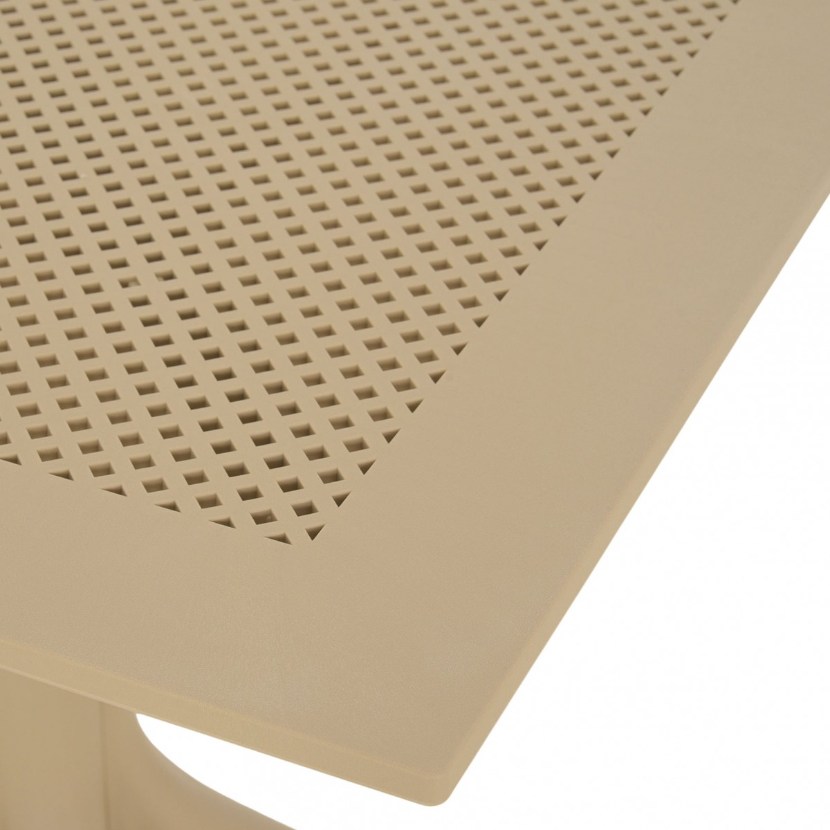 Realizata din polipropilena cu protectie UV, masa este conceputa pentru utilizare in exterior, rezistand bine la soare, umiditate si utilizare frecventa. Materialul nu necesita intretinere speciala si isi pastreaza aspectul in timp.