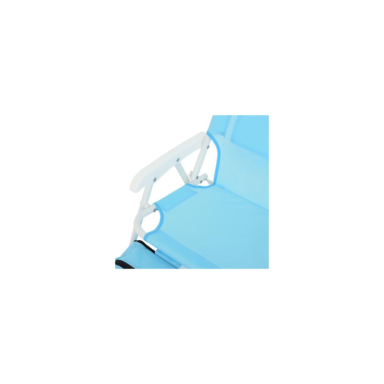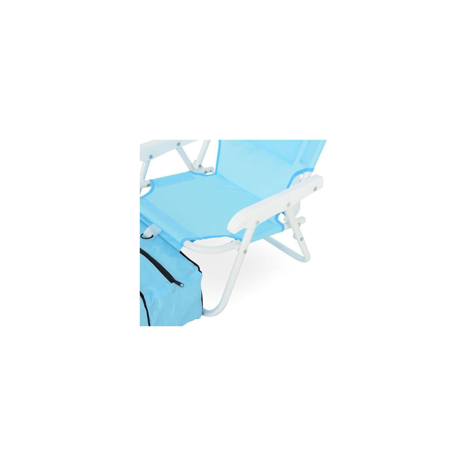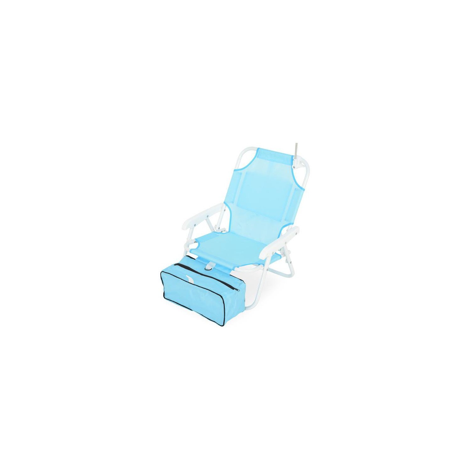 Realizat din structura de otel vopsita in camp electrostatic. Sezutul si spatarul scaunului sunt realizate din poliester rezistent ala apa si impotriva razelor UV. Include umbrela, geanta frigorifica si buzunar depozitare . Dimensiuni : Scaun 37x28x46Hcm Umbrela dia.80cm