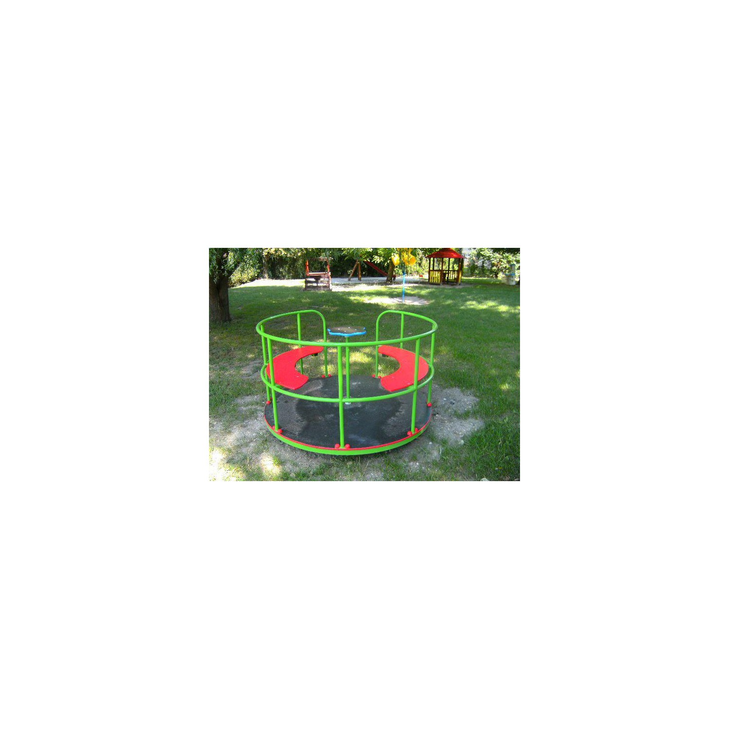 Acest intrument de joacă este ideal pentru grădinițe, poate fi utilizat de 6-8 copii de odată. Caruselul este înconjurat cu balustradă oferind siguranță maximă. Complexul are certeficat TÜV. Disponibilitate: confecționat în termen de 4-5 săptămâni.