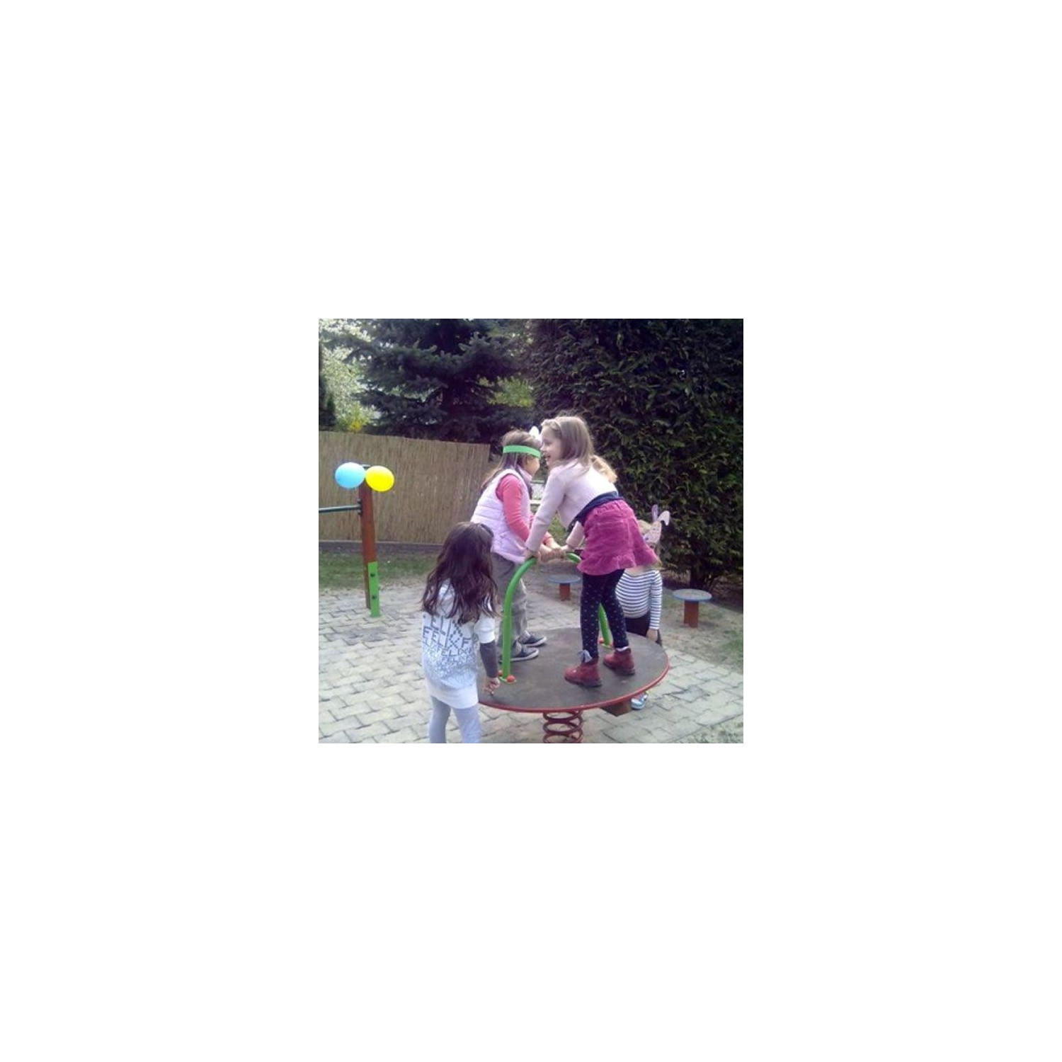 Recomandam acest instrument pentru gradinite si parcuri publice. Discul poate fi utilizat de 2-3 copii de odata. Structura jocului este dotata cu cadru din otel curbata. Datorita designului poate fi utilizat in conditii de siguranta. Pentru protecția copiilor va recomandăm pavarea suparfeței cu covoare de cauciuc marca ReFlex (produs proprie). Disponibilitate: confecționat în termen de 4-5 săptămâni. Vârsta utilizatorilor 3-6 ani Dimensiune (lățime x lungime) 100 x 100 cm Înălţime 60 cm Greutate: 35kg