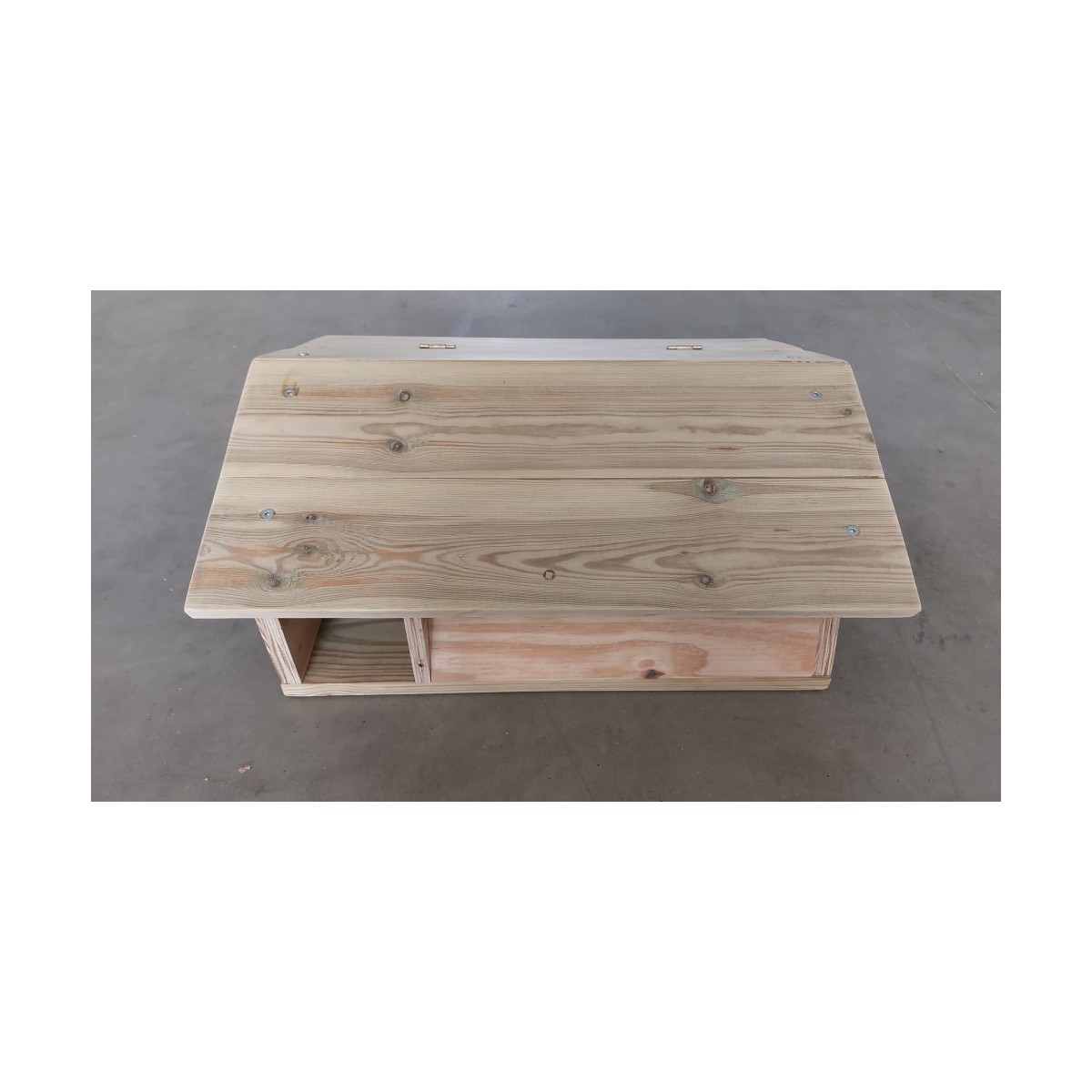 ✅ Realizată din lemn natural, cu acoperiș detașabil – ușor de curățat și întreținut