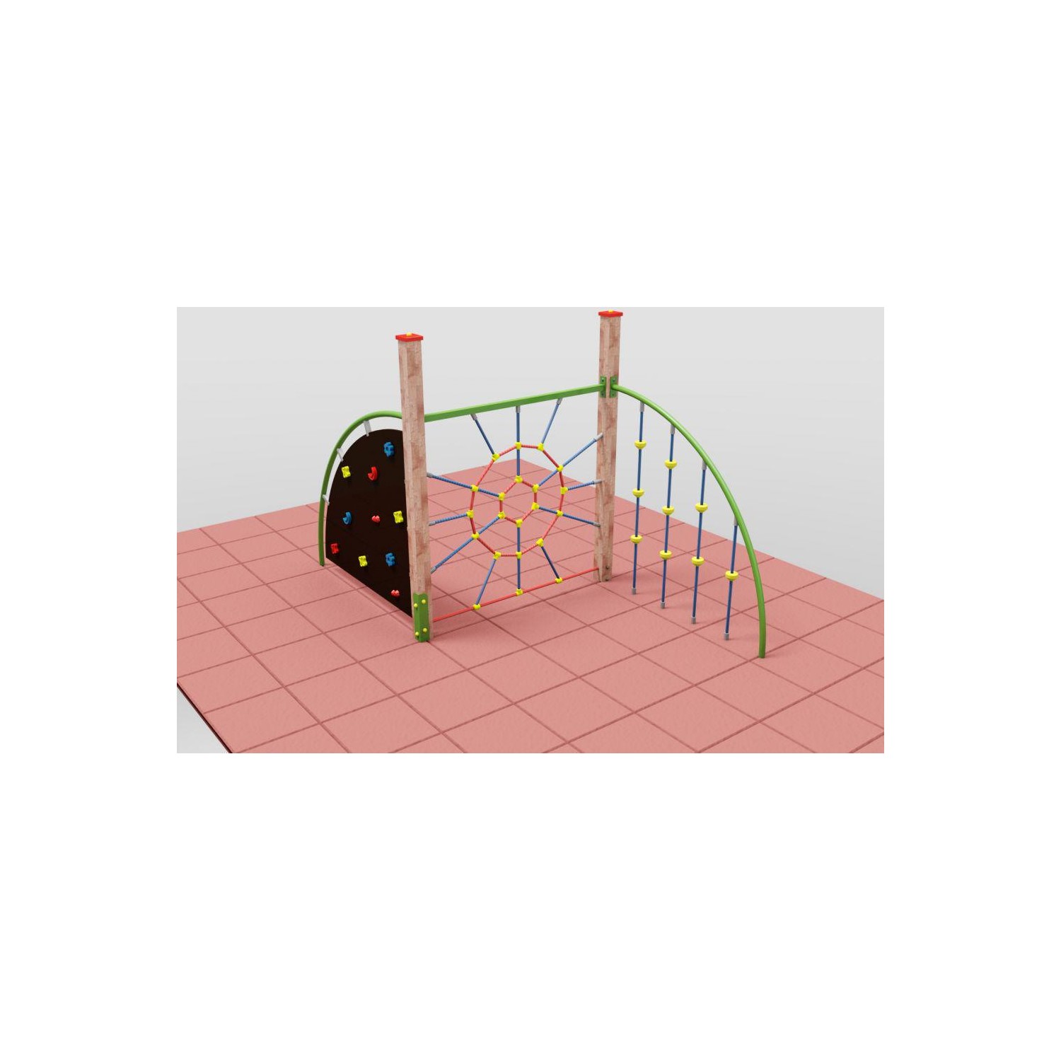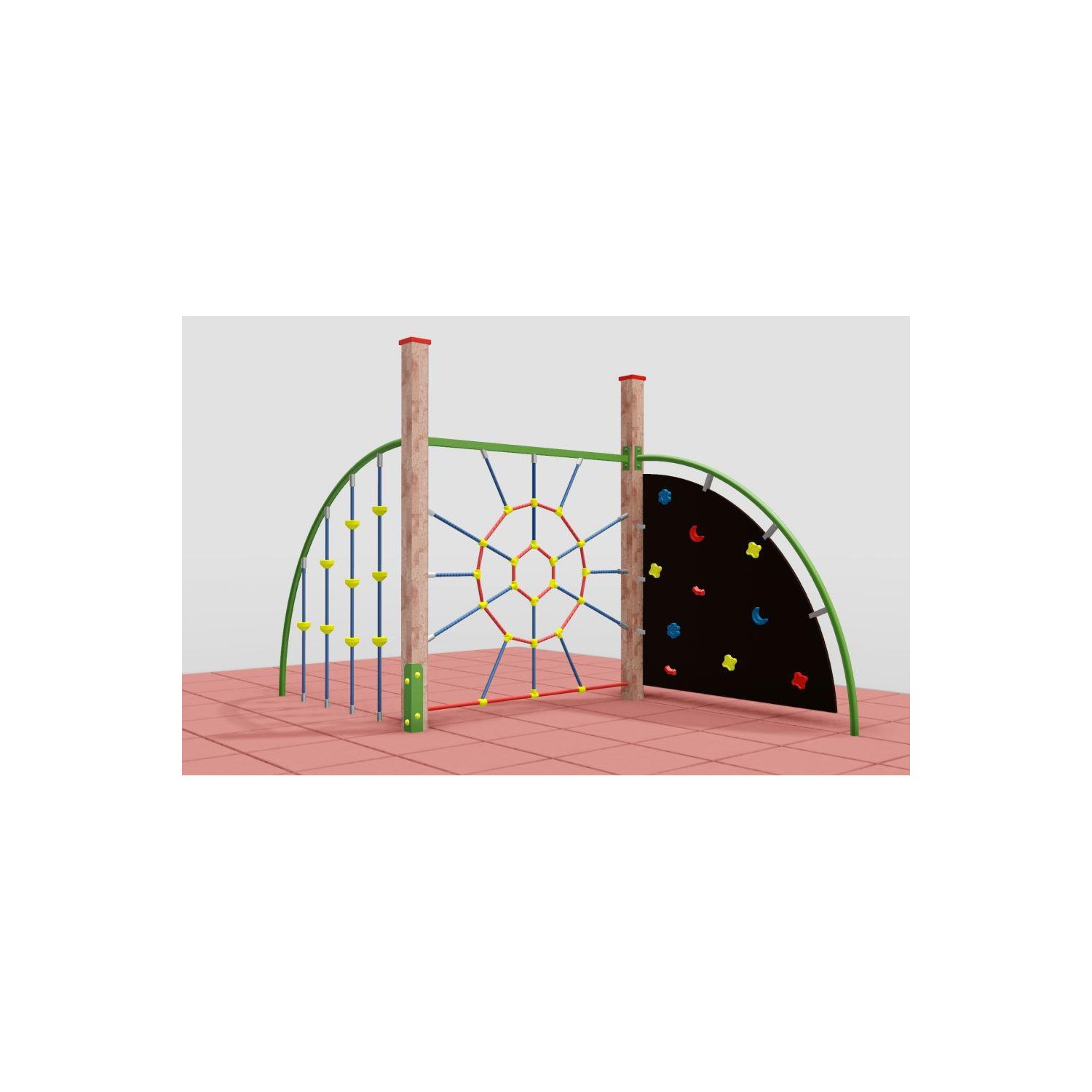 Este un cățărător combinat pentru a dezvolta coordonarea mișcării. Are 3 părți: un perete de catarare cu pietre colorate si 2 module cu franghii: unul sub forma de panza de pajanjeni, iar celalalt are franghii paralele. Poate fi folosit de 6-7 copii in acelasi timp. Se recomanda pentru parcuri publice, scoli. Disponibilitate: confecționat în termen de 4-5 săptămâni.