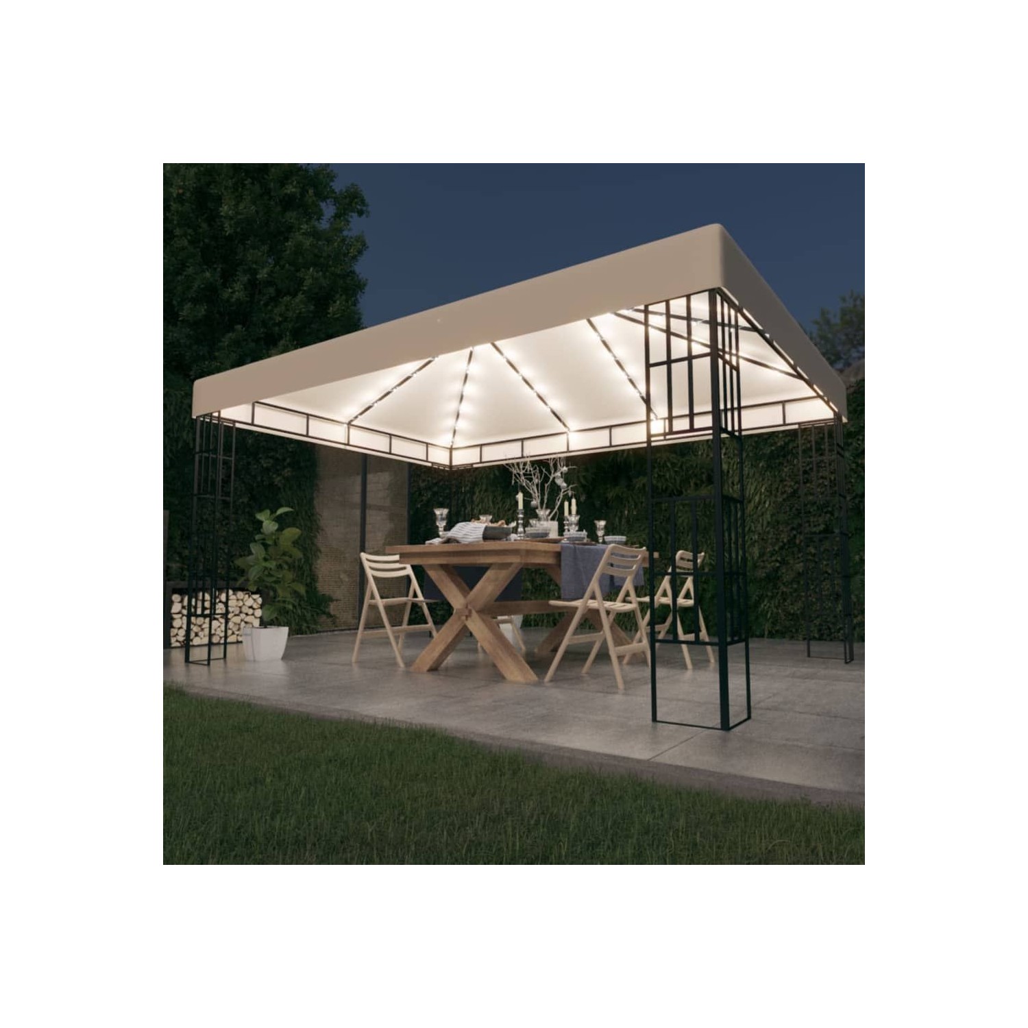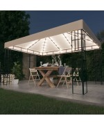 Pavilion cu sir de lumini LED, crem, 3x4 m