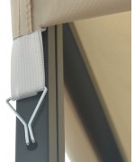 Copertina are colturi intarite si elemente de fixare cu banda autoadeziva cu arici, fiind usor de atasat la cadrul pavilionului.