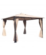 Pavilionul este realizat din structura de aluminiu vopsita cu pulbere tratata UV, iar tesatura este confectionata din poliester, fiind rezistenta la umezeala (ploaie de vara).