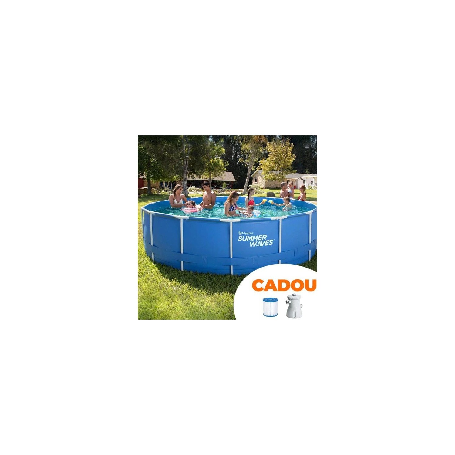 Alcatuita dintr-o structura din tije rezistente la coroziune si un material durabil triplustratificat din PVC laminat si tesatura din poliester, piscina Summer Wave va poate oferi nenumarate ore de distractie, sezon dupa sezon, cu dimensiunile ei generoase.