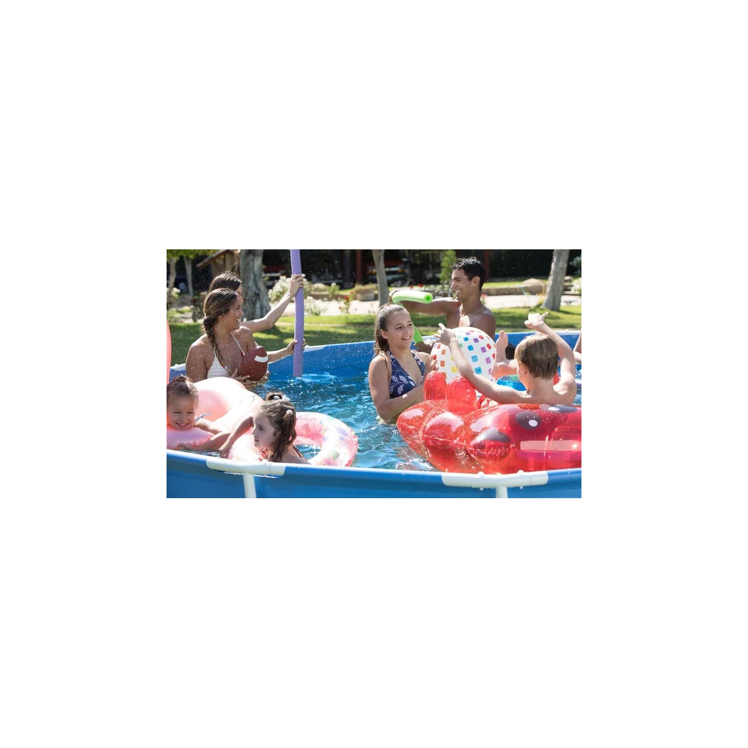 Materialul triplustratificat din PVC laminat si tesatura din polyester, va garanteaza nenumarate ore de scaldat si distractie!