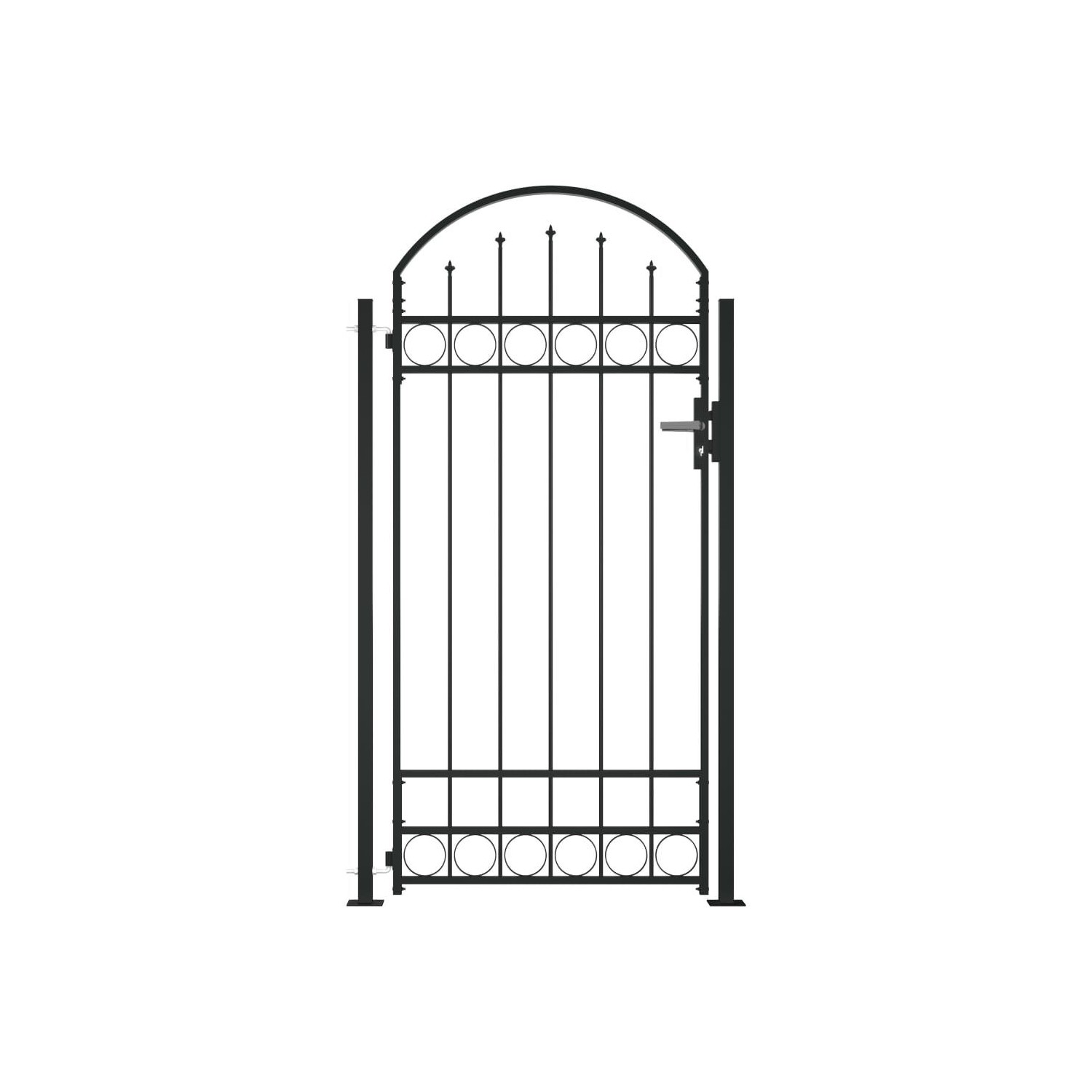 Poarta de gard cu varf arcuit si 2 stalpi, negru, 100 x 200 cm