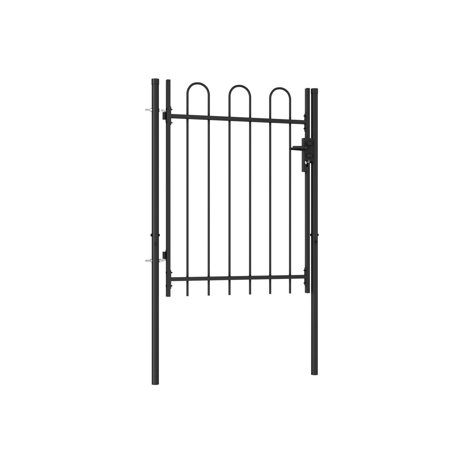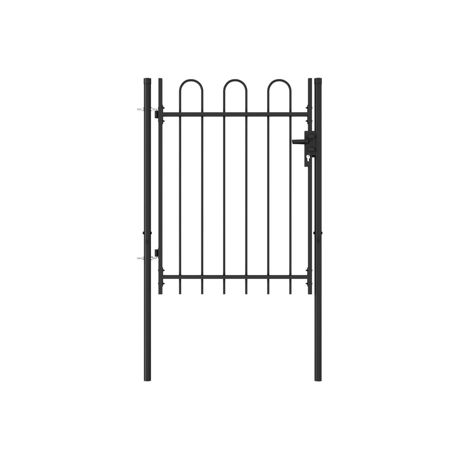 Poarta de gard cu o usa, varf arcuit, negru, 1 x 1,2 m, otel