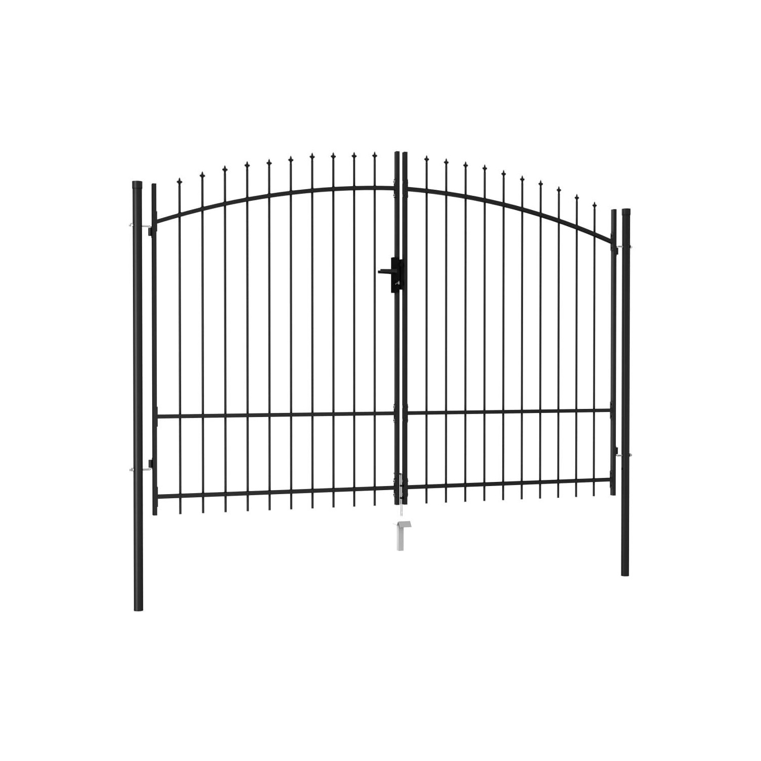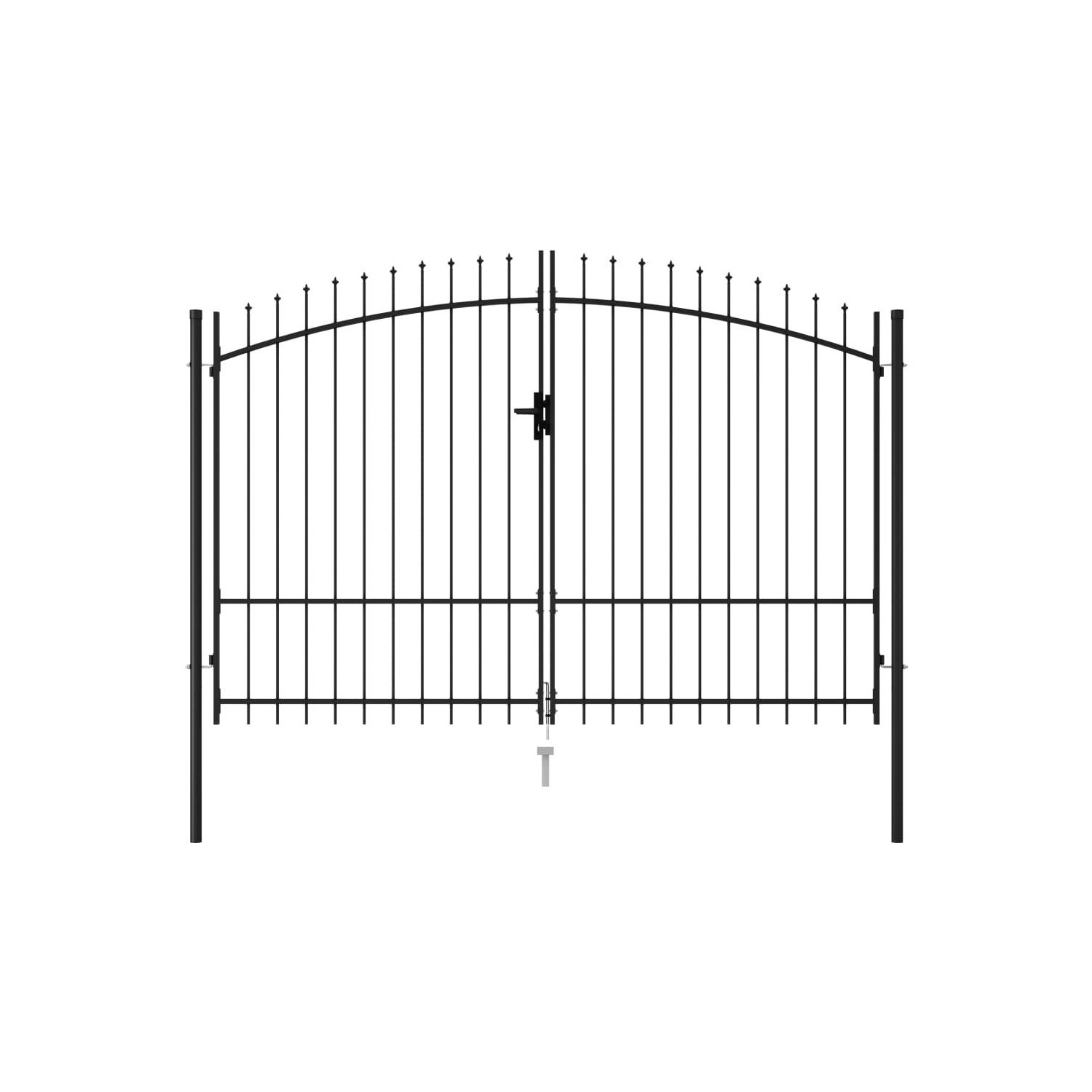 Poarta de gard cu usa dubla, varf ascutit, negru 3x1,75 m otel