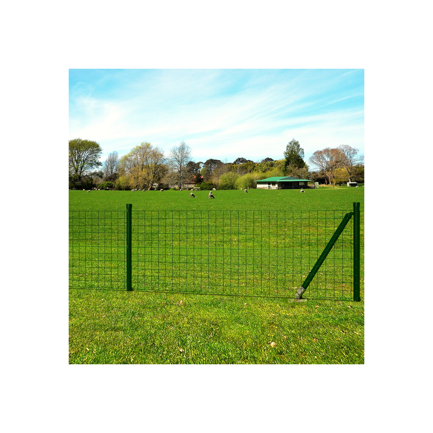 Acest set format din plasa si stalpi a fost conceput pentru a fi intrebuintat in diferite moduri: pe post de gard obisnuit, pentru infrumusetare sau pentru protejarea animalelor, cat si in diferite domenii: in gradini, industrie, ferma, transport, etc. Setul dispune de o structura simpla ceea ce il face usor de montat. Este livrat cu stalpi si accesorii de montaj. tarusii inclusi in livrare va permit sa strapungeti iarba si sa fixati stalpii cu usurinta. Datorita plasei metalice acoperite cu PVC, setul Eurofence este rezistent la rugina, coroziune si radiatii UV.