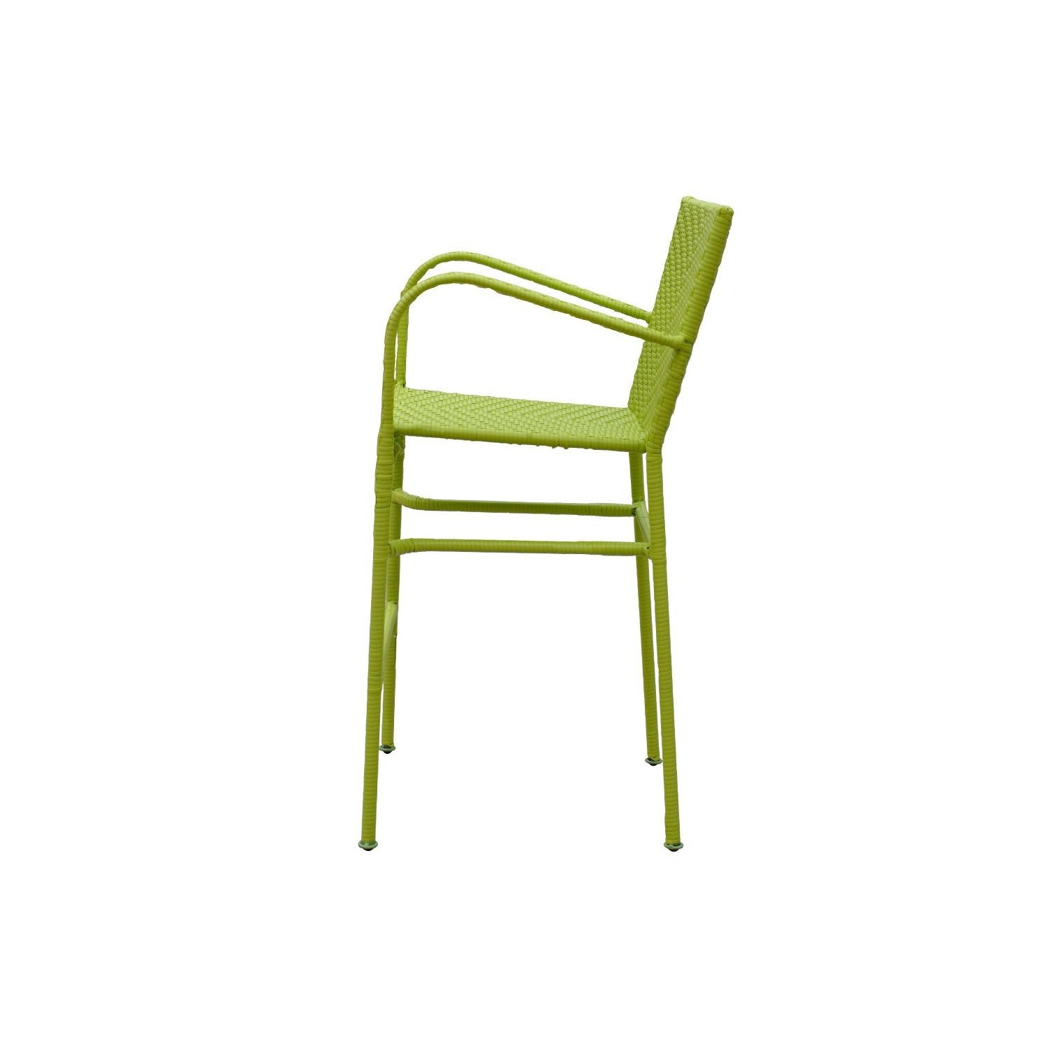 Mobilier realizat din structura de otel vopsita in camp electrostatic si impletita cu fibre sintetice tratate UV ce imita ratanul. Scaunul este suprapozabil.