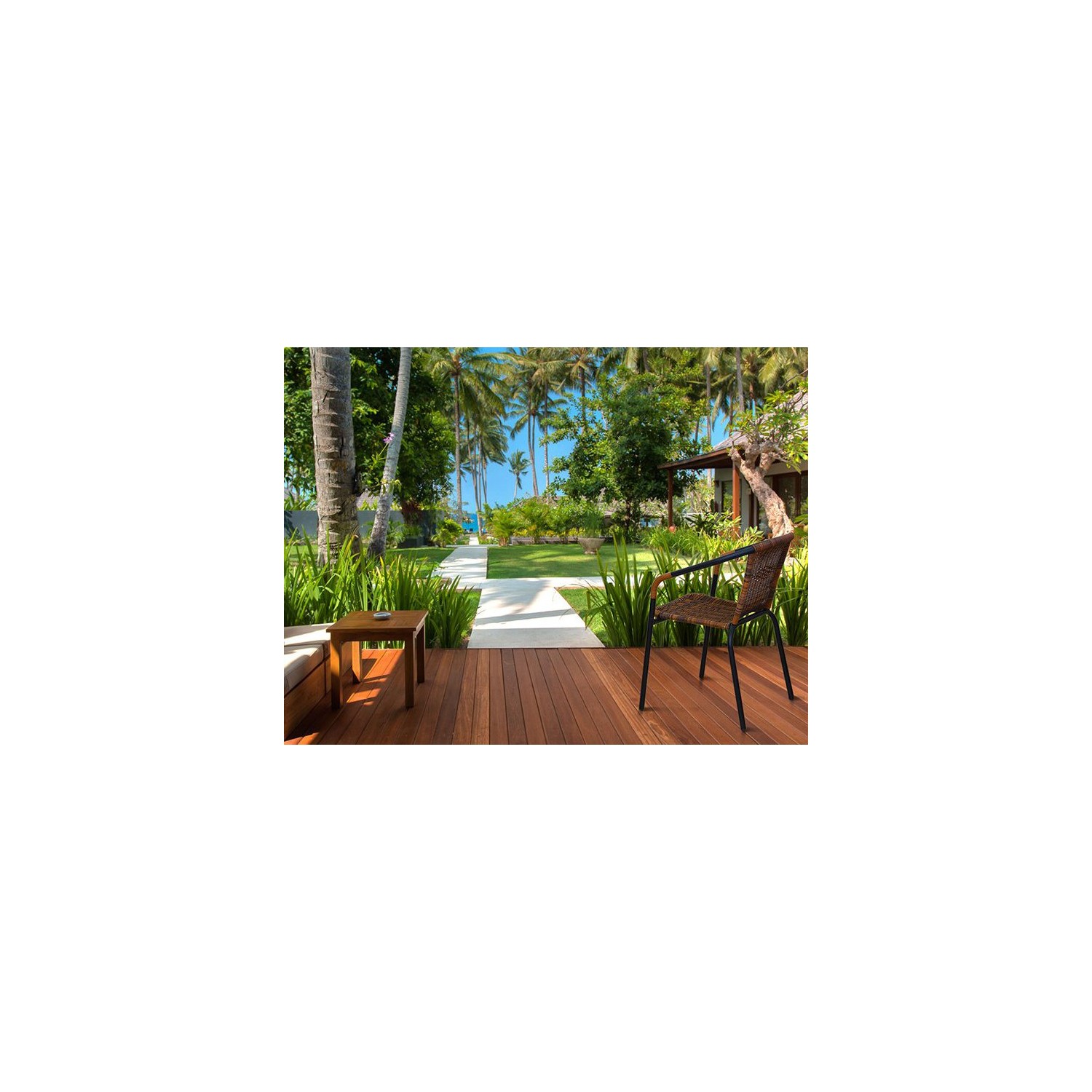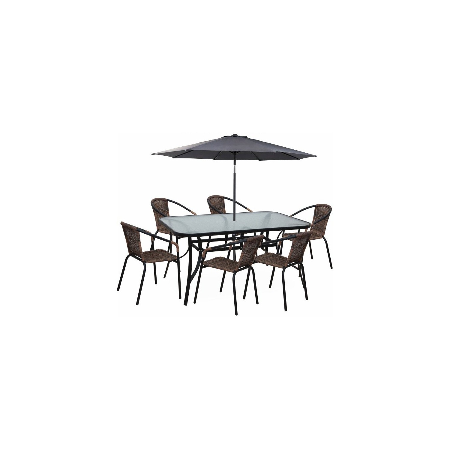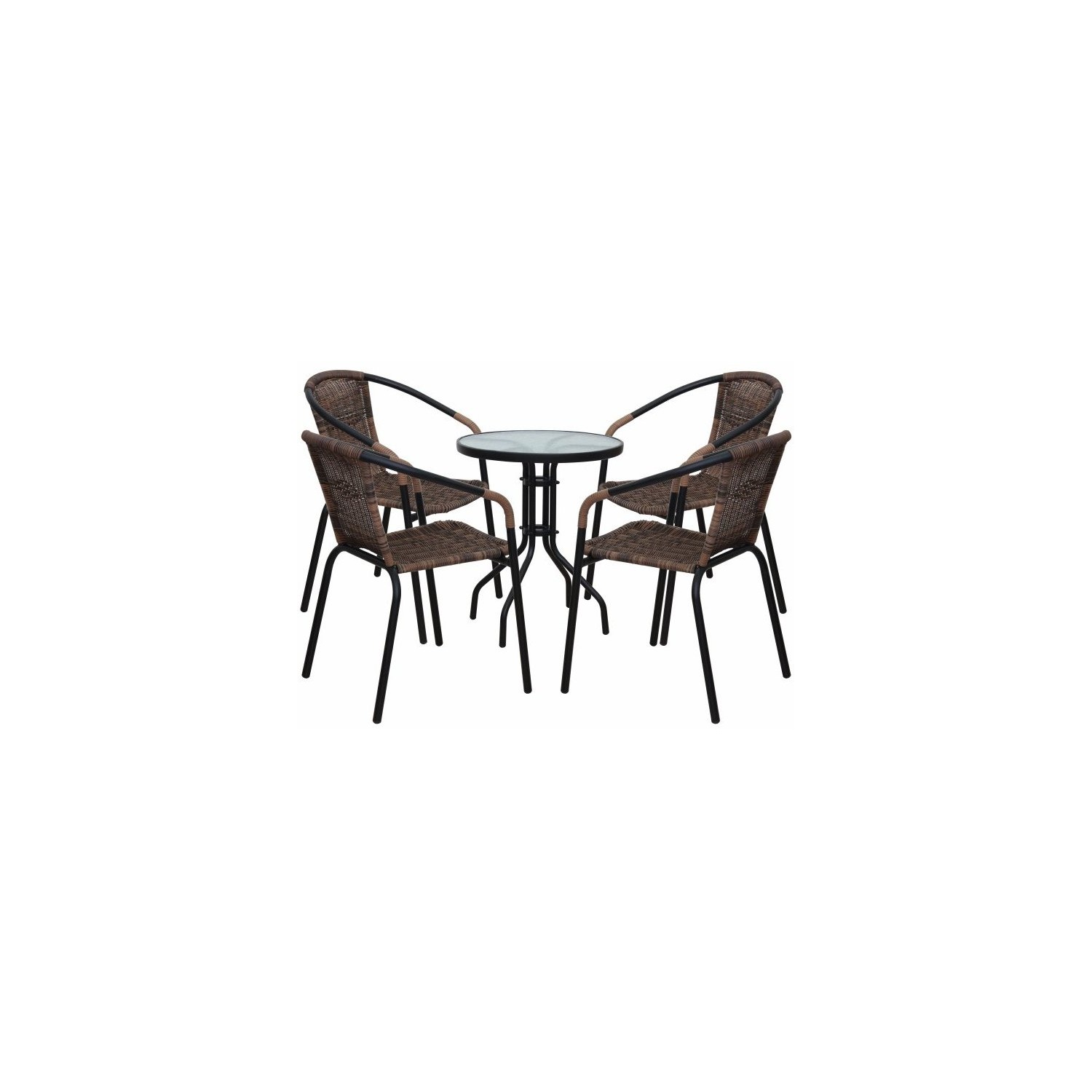 Sezutul si spatarul împletite din rattan maro artificial, constructia ferma si stabila din metal negru, confera gradinei dvs.un aspect placut si elegant.