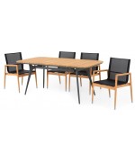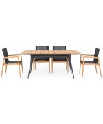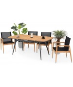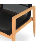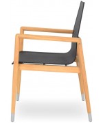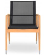 Scaunul este realizat din structura din lemn de teak, sezutul si spatarul fiind confectionate din textilina fina cu protectie UV.