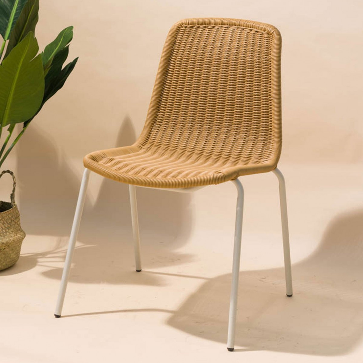 Realizat din structura de aluminiu vopsita in camp electrostatic si impletita cu fibre sintetice tratate UV, ce imita ratanul, scaunul este o piesa deosebita din punct de vedere cromatic, stabilitatea fiind una pe masura asteptarilor.