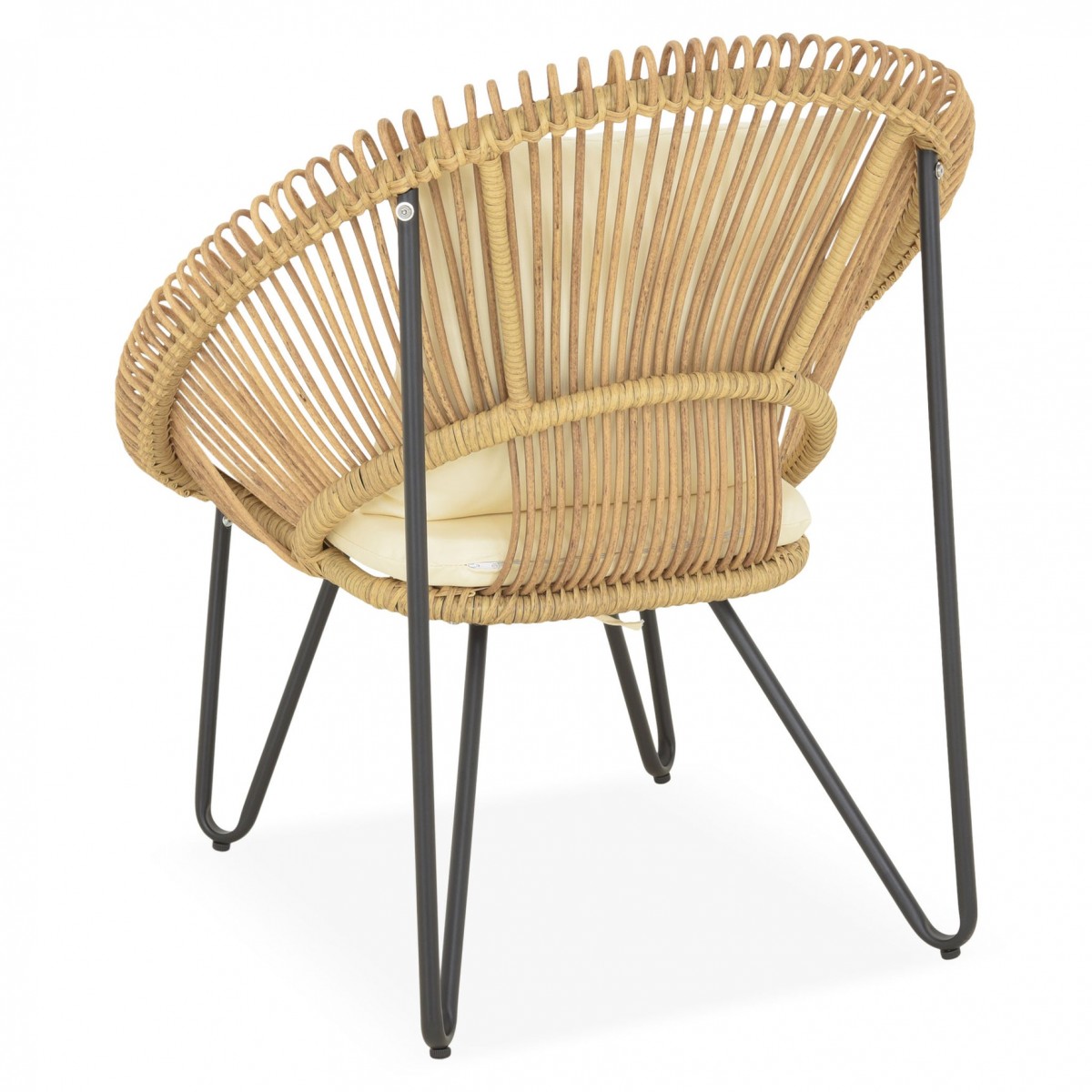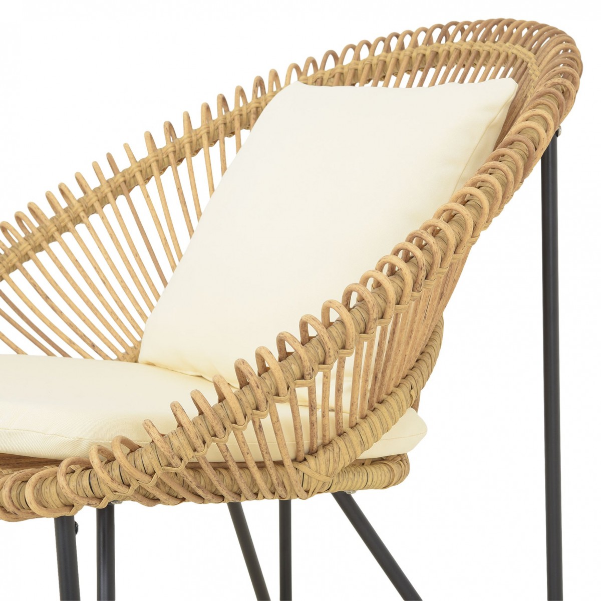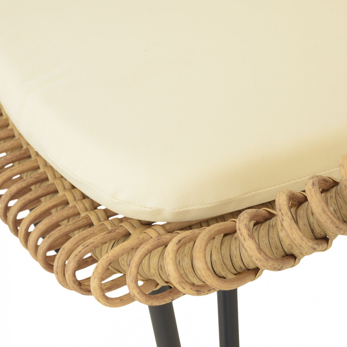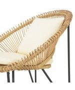Structura solida din otel vopsit in camp electrostatic asigura stabilitate si rezistenta in utilizare. Impletitura din fibre sintetice tratate UV imita aspectul natural al ratanului, oferind un plus de stil si durabilitate, fiind potrivita pentru utilizare in aer liber pe termen lung.