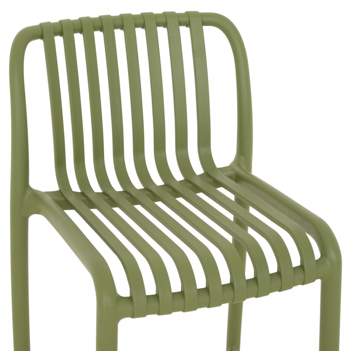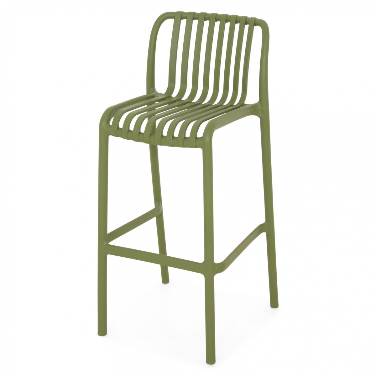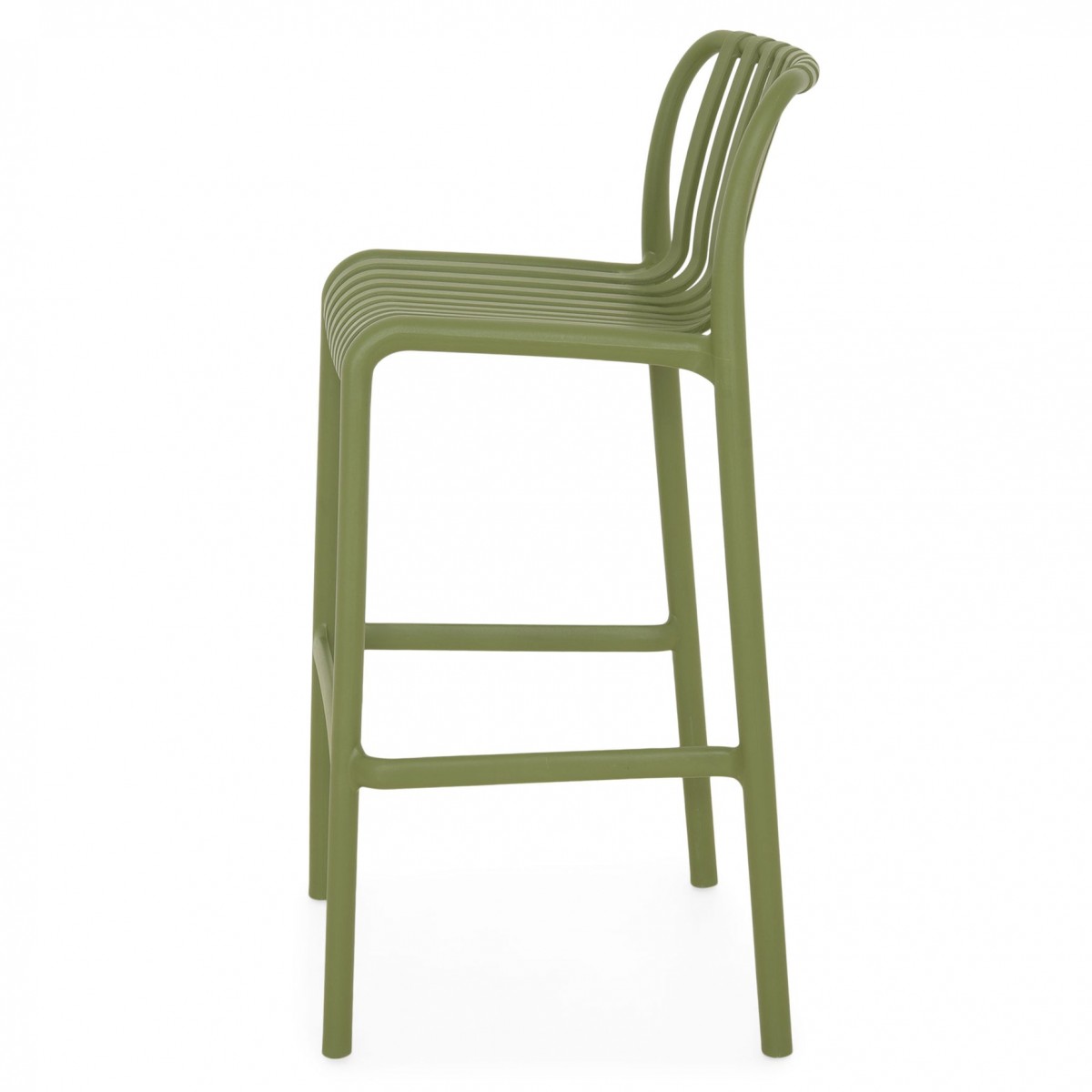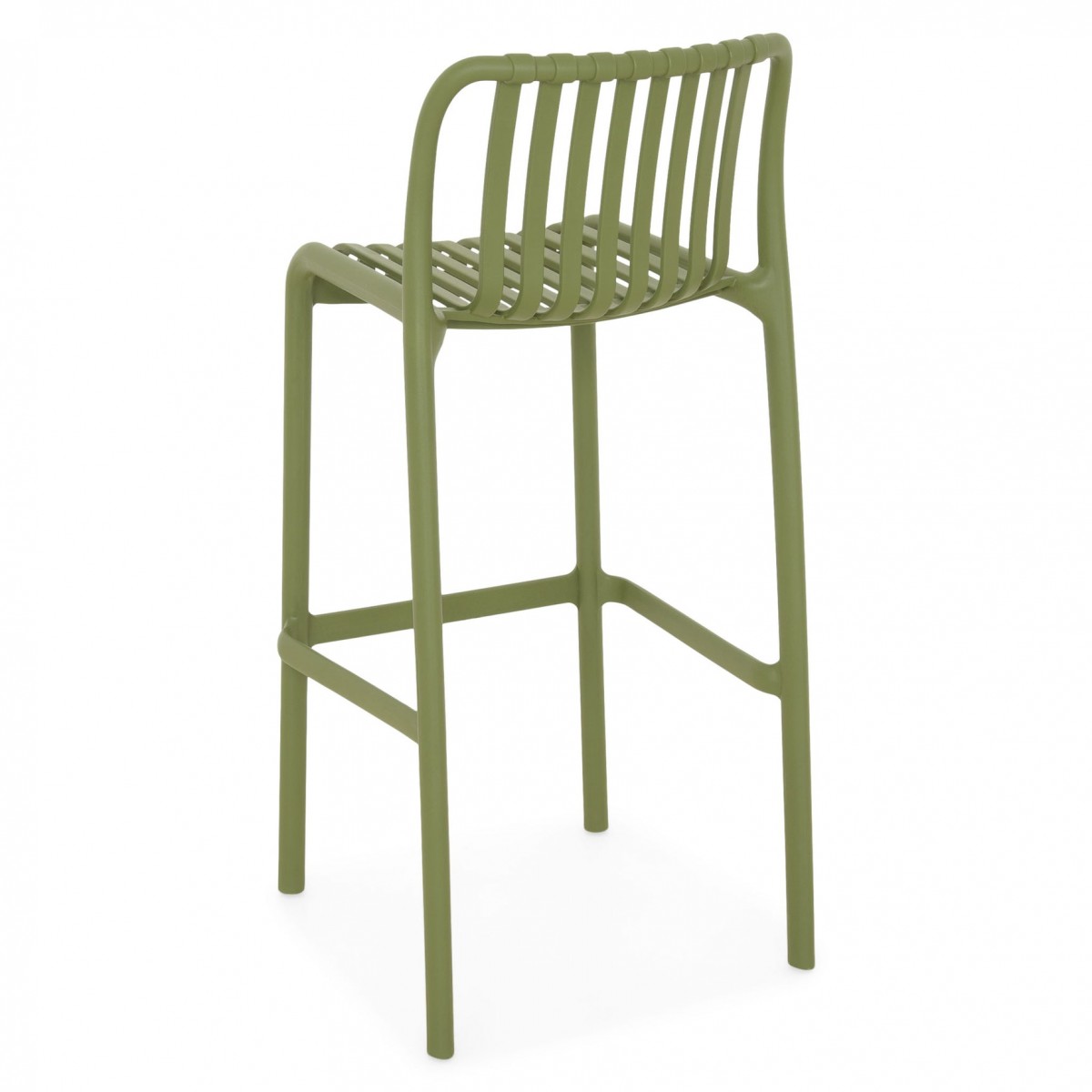 Scaunul bar ALPINE este o piesa de mobilier moderna si practica, conceputa pentru amenajarea zonelor de dining inalte sau a barurilor de exterior. Culoarea verde aduce un plus de prospetime si se integreaza natural in decoruri de terasa sau gradina, oferind un aspect placut si relaxant.