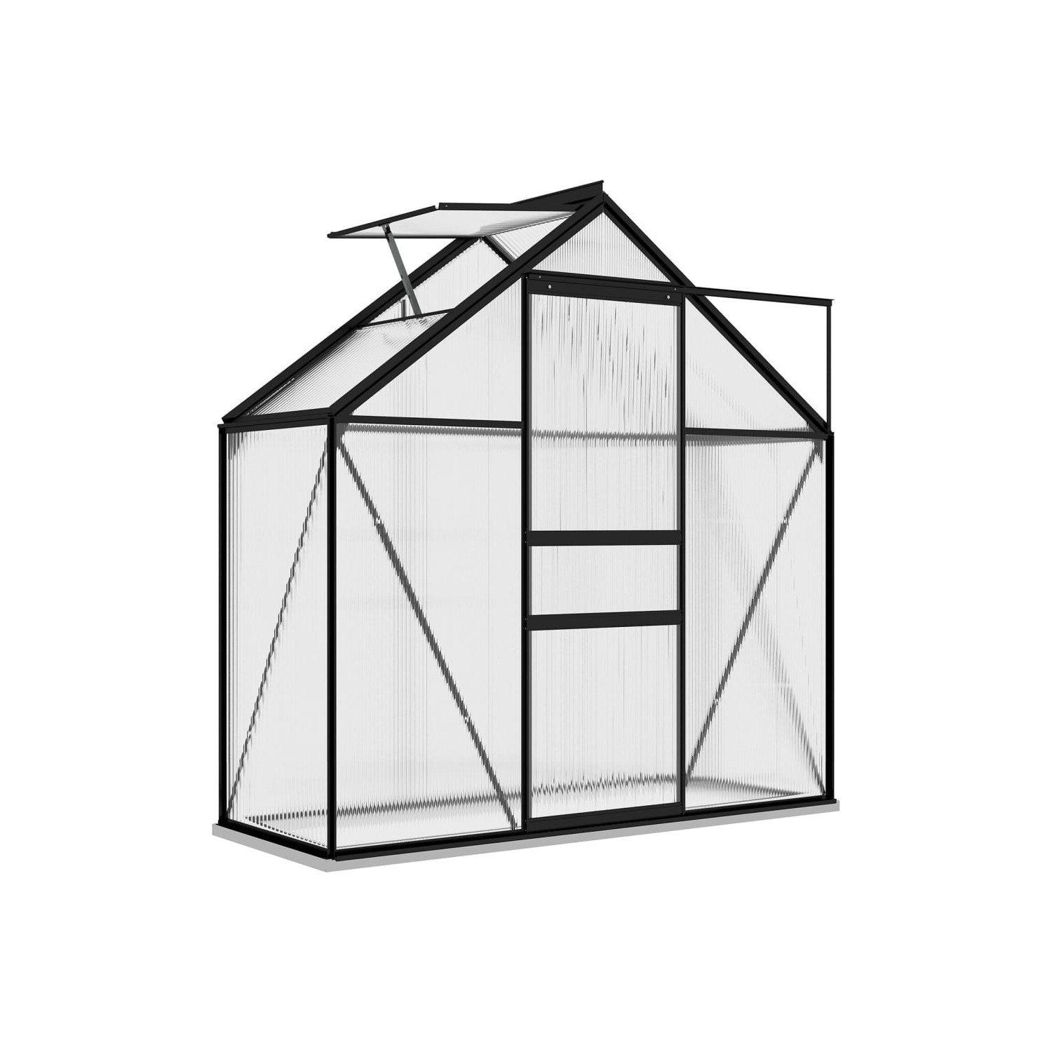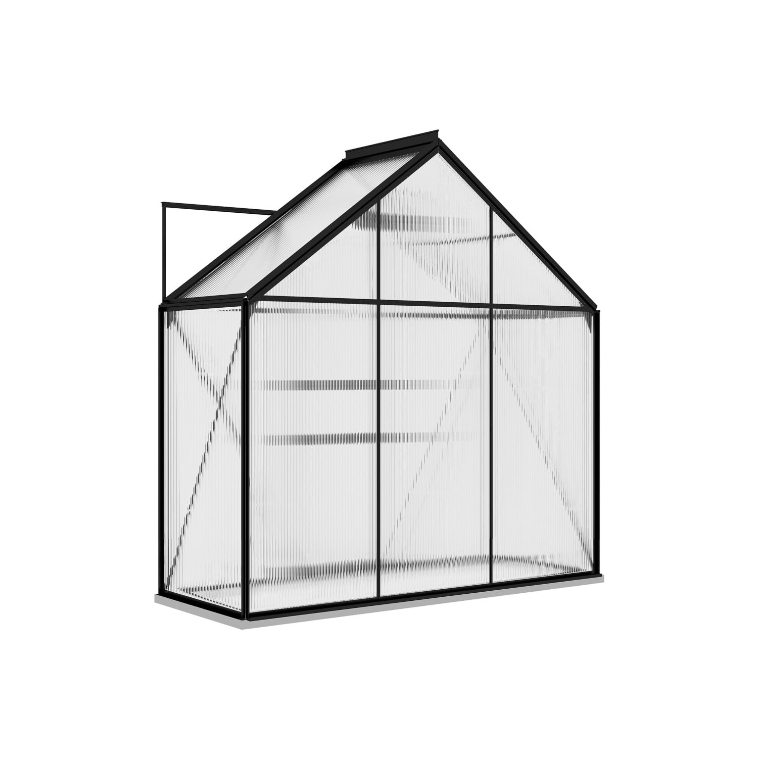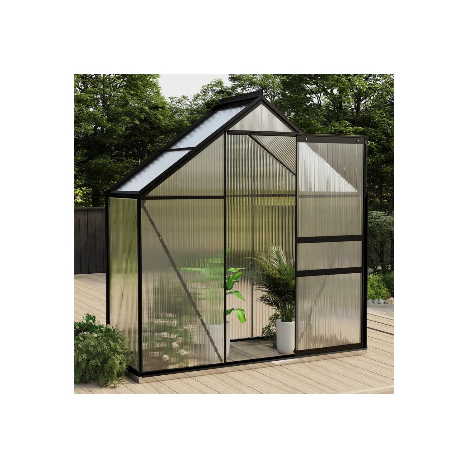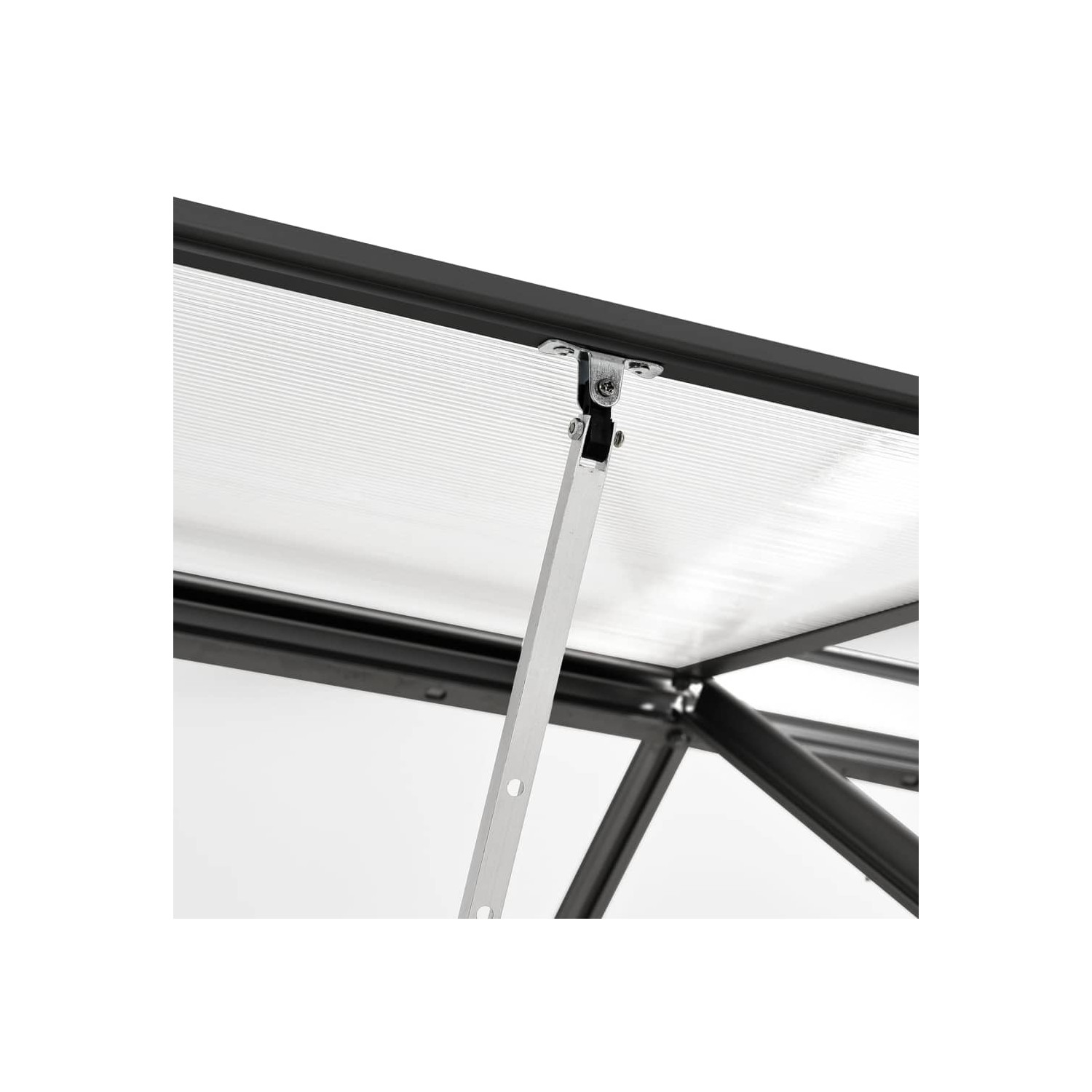 Aceasta sera, realizata din panouri de policarbonat, este rezistenta la raze UV si izolata termic. Pentru un plus de stabilitate, sera are o constructie robusta din aluminiu, care nu necesita intretinere.