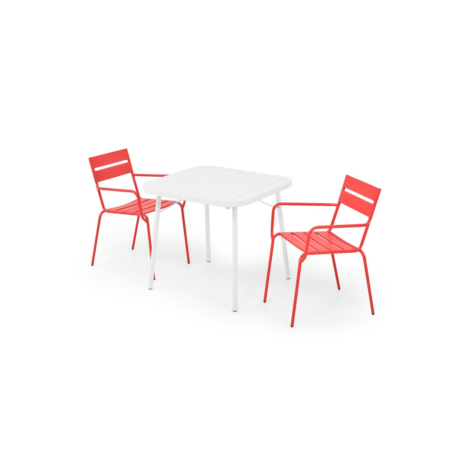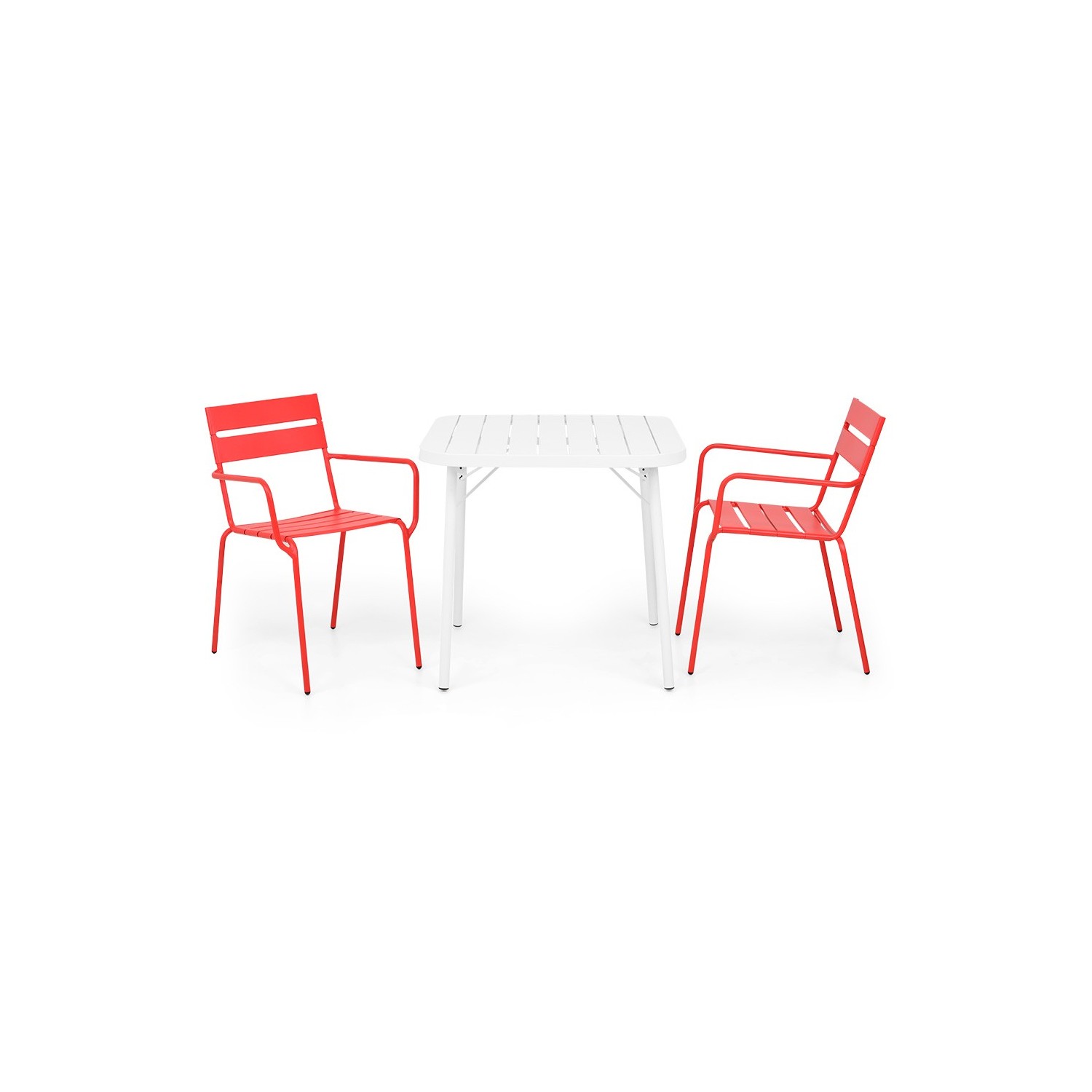 Set 2 Scaune si Masa patrata BALI  alb-rosu
