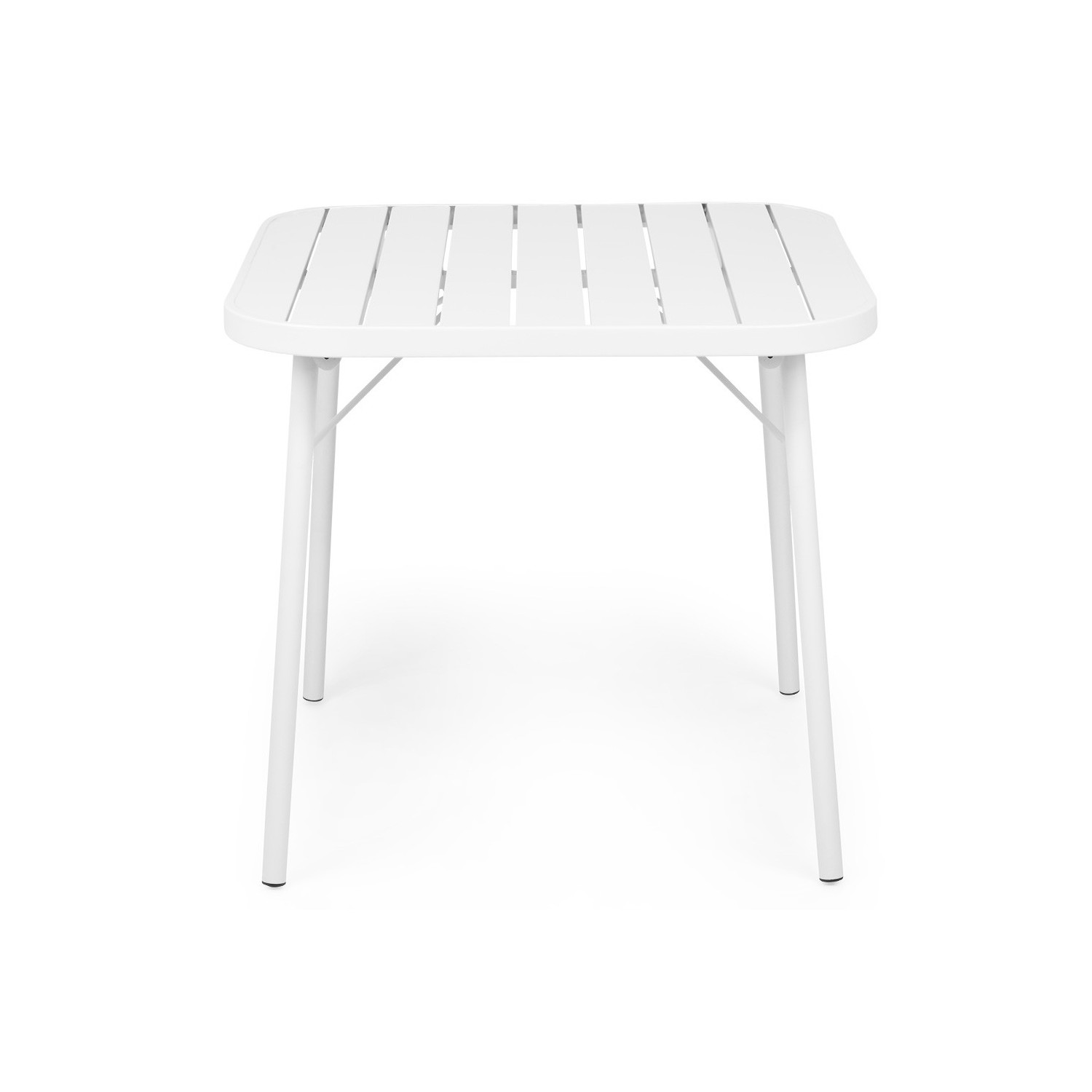 Mobilier de gradina realizat din structura de otel vopsita in camp electrostatic. Masa este pliabila. Scaunele sunt suprapozabile.