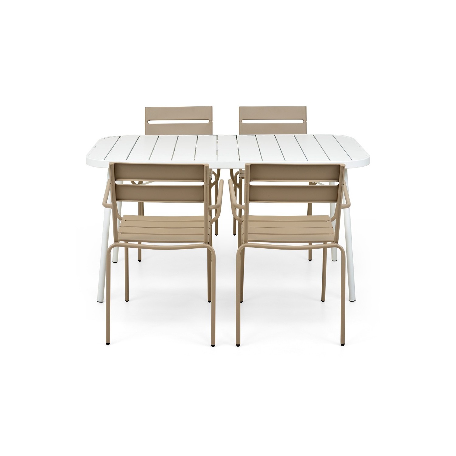 Set 4 Scaune si Masa dreptunghiulara BALI alb-kachi