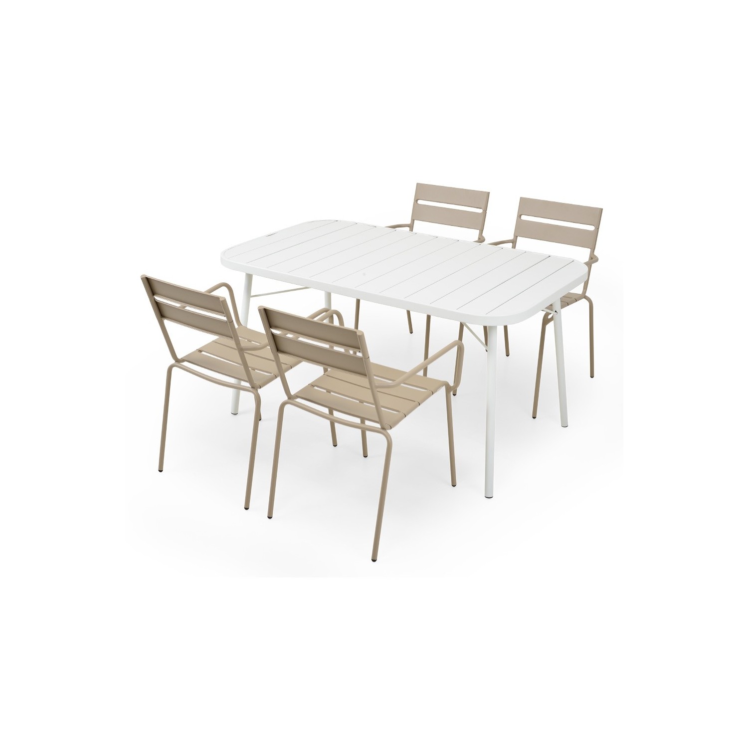 Set 4 Scaune si Masa dreptunghiulara BALI  alb-kachi