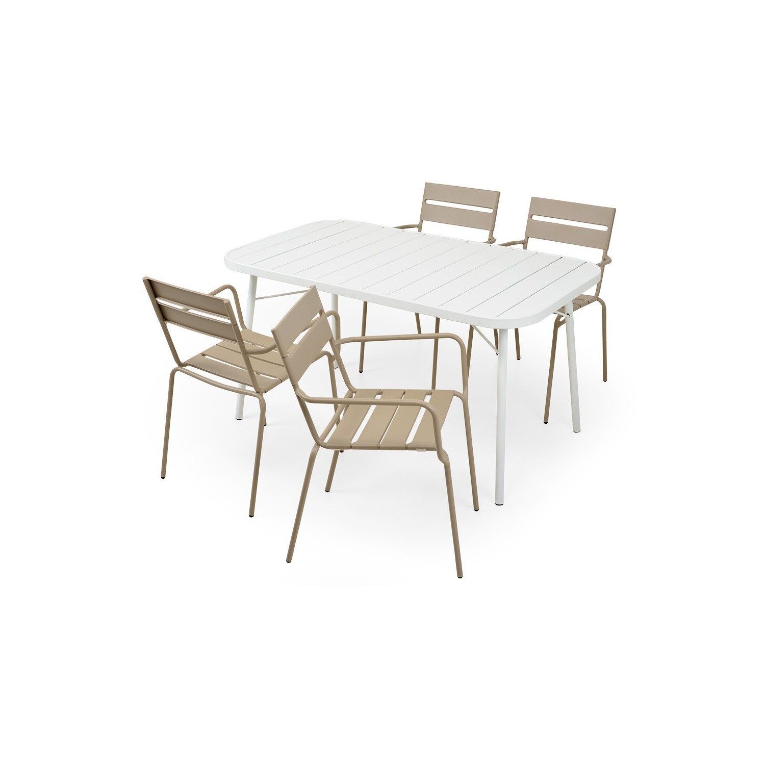 • Set 4 Scaune si Masa dreptunghiulara BALI  alb-kachi