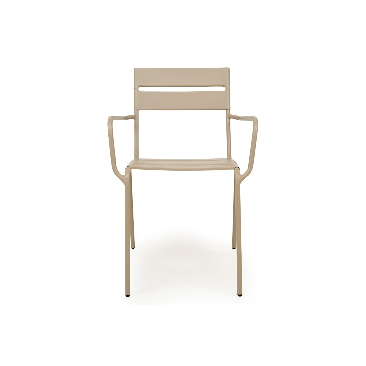 Mobilier de gradina realizat din structura de otel vopsita in camp electrostatic. Masa este pliabila. Scaunele sunt suprapozabile.