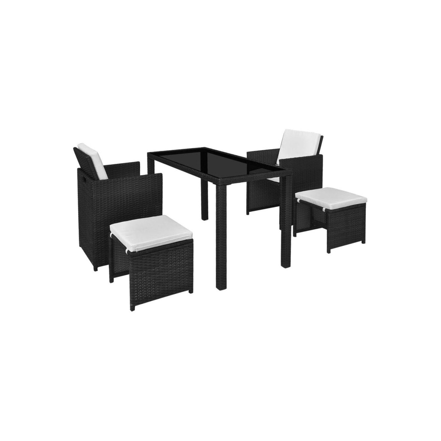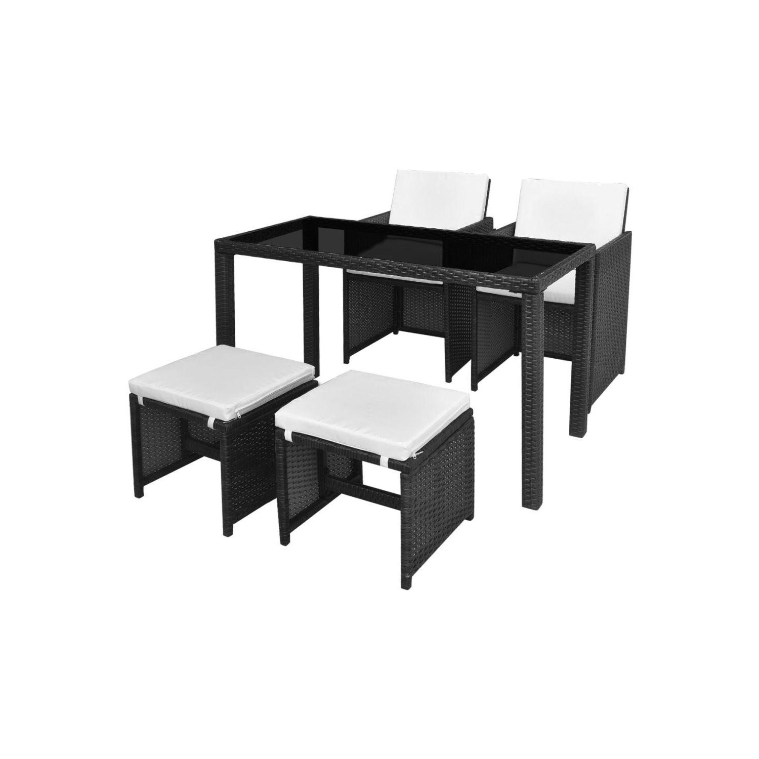 Setul nostru elegant de mobilier de exterior din ratan va deveni punctul de atracție al grădinii sau terasei dvs.! Acest set de mobilier de exterior din ratan, ce se bucură de un design elegant, este o alegere ideală pentru luarea mesei în aer liber sau pentru a vă relaxa în curte. Cadrele din oțel acoperite cu un strat de pulbere asigură robustețe și durabilitate mesei, scaunelor și taburetelor, iar datorită construcției ușoare, toate piesele de mobilier sunt ușor de mutat. Fiind realizat din ratan sintetic, rezistent la intemperii și impermeabil, setul de mobilier este ușor de întreținut. De asemenea, blatul din sticlă este ușor de curățat, cu o cârpă umedă. Pernele pentru șezut și spătar sunt umplute cu spumă, fiind dense, moi și foarte confortabile. Acestea sunt fabricate din poliester impermeabil. Husele detașabile și lavabile sunt prevăzute cu fermoare. Pachetul de livrare include 1 masă, 2 scaune, 2 taburete și 6 perne. Notă: Vă recomandăm acoperirea setului în condiții de ploaie, zăpadă și îngheț.