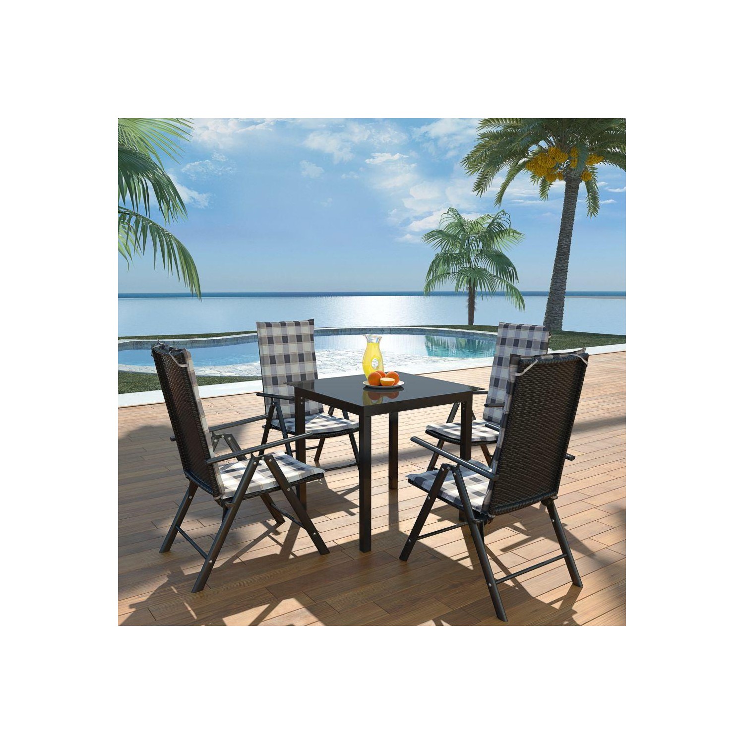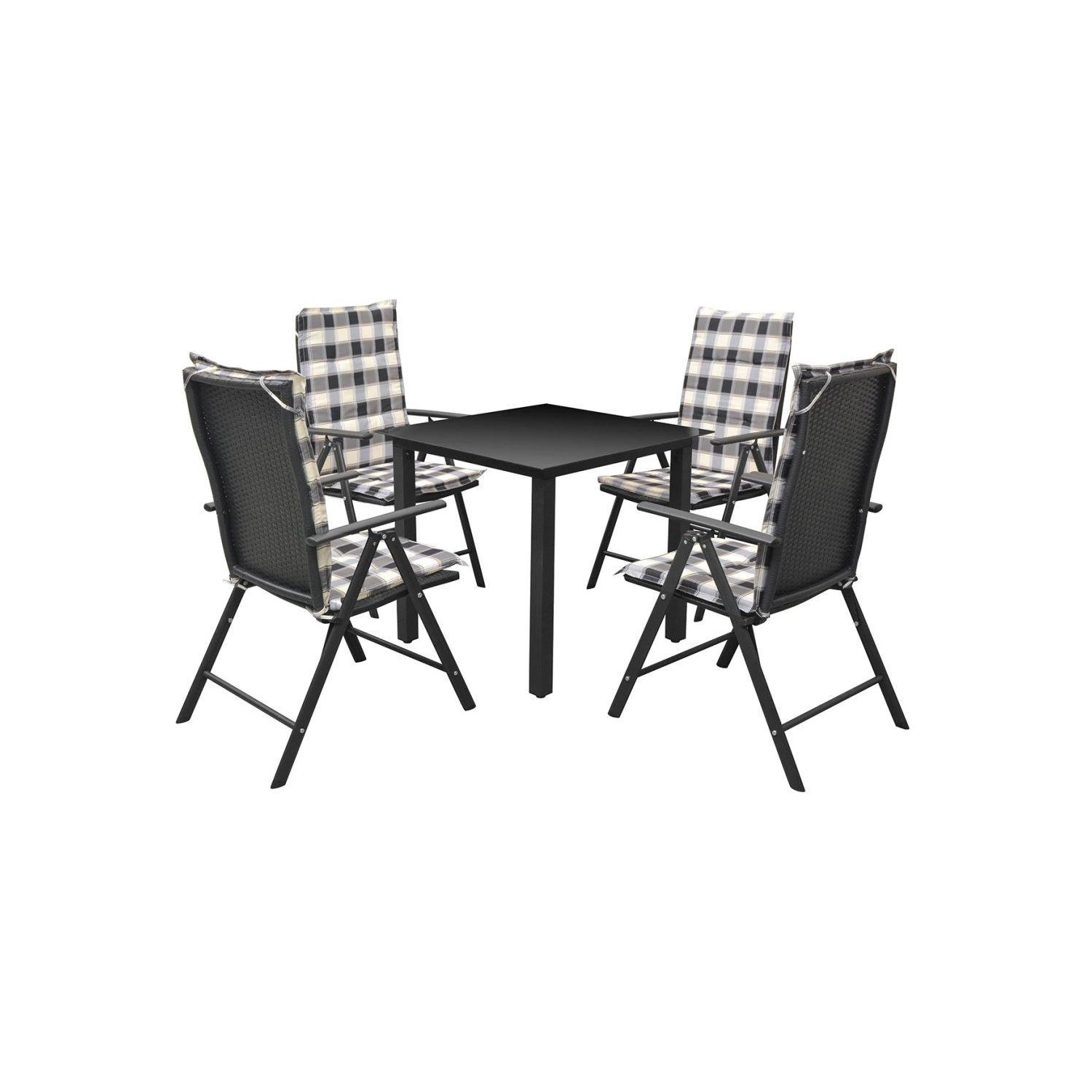 Acest set de mobilier de gradina elegant va deveni punctul de atractie al gradinii sau terasei dvs. Masa, cu blat neted din sticla neagra, este ușor de curatat.